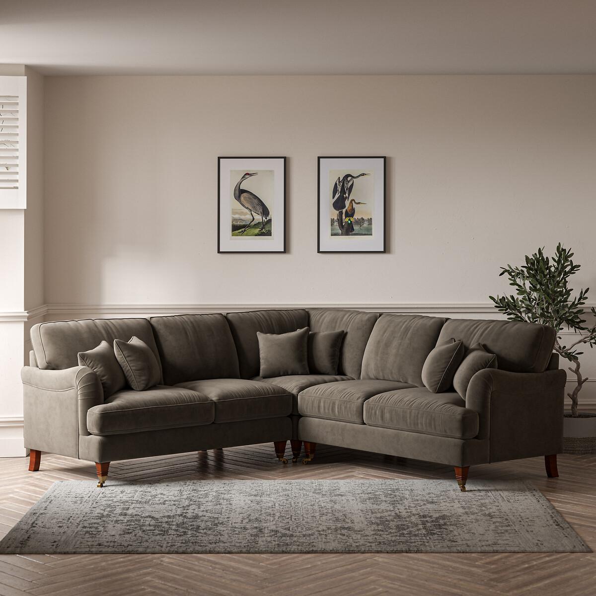 Emeline Velvet Corner Sofa with Castor Legs
