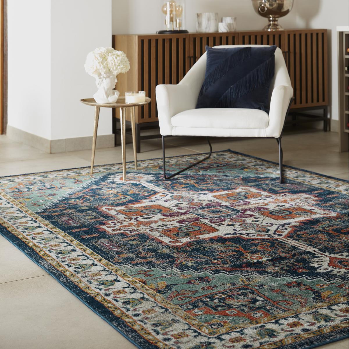 This emerald green oriental-inspired rug adds a touch of classic charm and colour to a living space, making it versatile for both traditional and eclectic interiors. I love how its rich tones can anchor a neutral colour palette or complement other jewel tones. It's practical too - easy to vacuum and spot clean, which is ideal for busy family homes or spaces that see a lot of foot traffic. For styling, try pairing it with vintage or wooden furniture to enhance its traditional appeal, or place it under a contemporary sofa to create an unexpected, stylish contrast. It’s a great way to introduce colour and pattern without overwhelming the room.