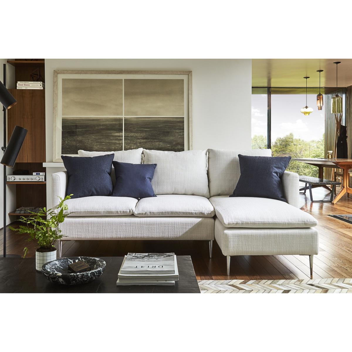 I love this corner sofa for its versatile, contemporary look and comfortable proportions, making it ideal for both open-plan living and more cosy spaces. The Frost Highland Tweed fabric adds a subtle texture that complements both neutral and bold colour schemes, while its clean lines and slim legs keep the overall look fresh and modern. It's especially well-suited to interiors that blend minimalist with Scandi or mid-century influences. To style around it, consider grouping with soft throw cushions in complementary colours or patterns to add personal character, and keep accessories minimal for a sleek, inviting vibe. This sofa works great with a range of lighting styles, from statement floor lamps to layered table lighting, creating a welcoming and stylish environment.