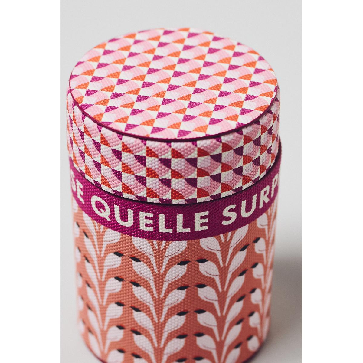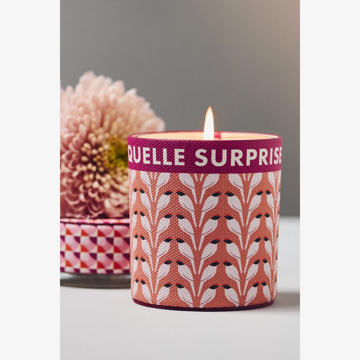 What a surprise! Wrapped in a vibrant block-print fabrication, this candle looks as good as it smells. **White Cashmere & Musk (Fresh Gourmand):** Comforting cashmere and crushed black currant join a clean, amber complex lifted by powdery iris, white citron, crisp aldehydes, and soft misty elements draped over smooth tones of musk-infused sandalwood. *For the best burn experience, keep the following in mind:* * The first time you light your candle, allow it to burn until the wax pool melts all the way to the edge; for a larger candle, this may take several hours. Wax has "memory," so if it is extinguished with a partial pool, that will prevent a full, even pool from forming in the future. * Trim your wick each time you light the candle, removing any "bloom" from the previous burn. We recommend lighting a wick that is 1/4-1/2" in length. * Ensure that your candle is placed on a heat-safe surface. * Do not allow wick trimmings, dust, or other materials to accumulate in the wax pool. * To ensure safety and longevity, be sure to check the bottom of your candle for additional instructions, including details on when to discontinue use. * 35-hour burn time * Coconut wax blend; cotton candle wick * Polyurethane-wrapped glass vessel * Imported