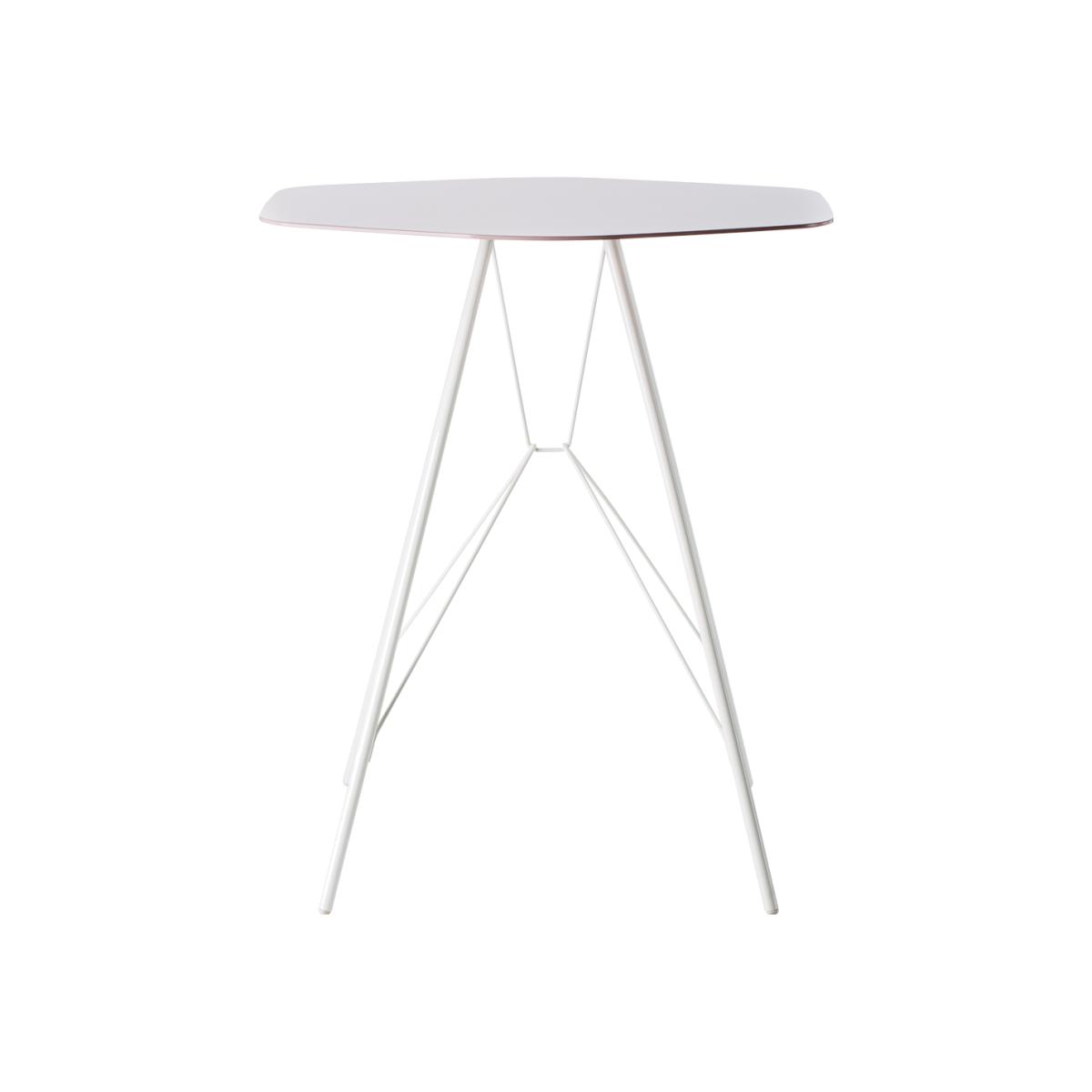 Created by Austrian designer Frank Rettenbacher for Zanotta in 2014, the white and pink Emil 647 Side Table is both lightweight and versatile, featuring a metallic structure that embraces slenderness to evoke a distinctive 1970s look. Expertly crafted using glossy lacquered steel, the pure white design features a pale pink hexagonal table top and is finished with a clean-lined white base with statement struts. Specially designed to blend beautifully into your interior scheme, the simplicity in the Emil Side Table's shape and the subtle blush of pink will lend a modern, feminine touch to your interior scheme. Furthermore, the multifunctional table can be used in living spaces by day or as a bedside table by night.