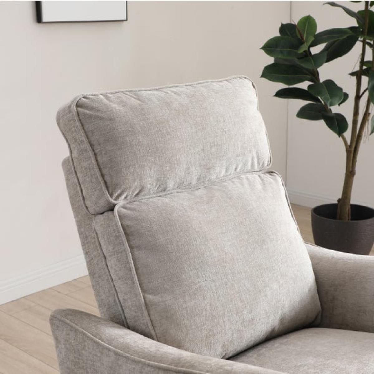 I love the Emil Chenille recliner for its cosy yet stylish appeal; its soft chenille fabric adds a touch of comfort while maintaining a modern look. It works particularly well in neutral or minimalist interiors, where its subtle texture can add depth without overpowering the space. Practical styling tips include pairing it with a plush throw or a few textured cushions for added comfort, and placing it near a side table or reading lamp to create an inviting relaxation area. Its swivel feature makes it versatile, perfect for both lounging and casual conversations, making it an excellent choice for a living room or study with a contemporary or contemporary-casual vibe.