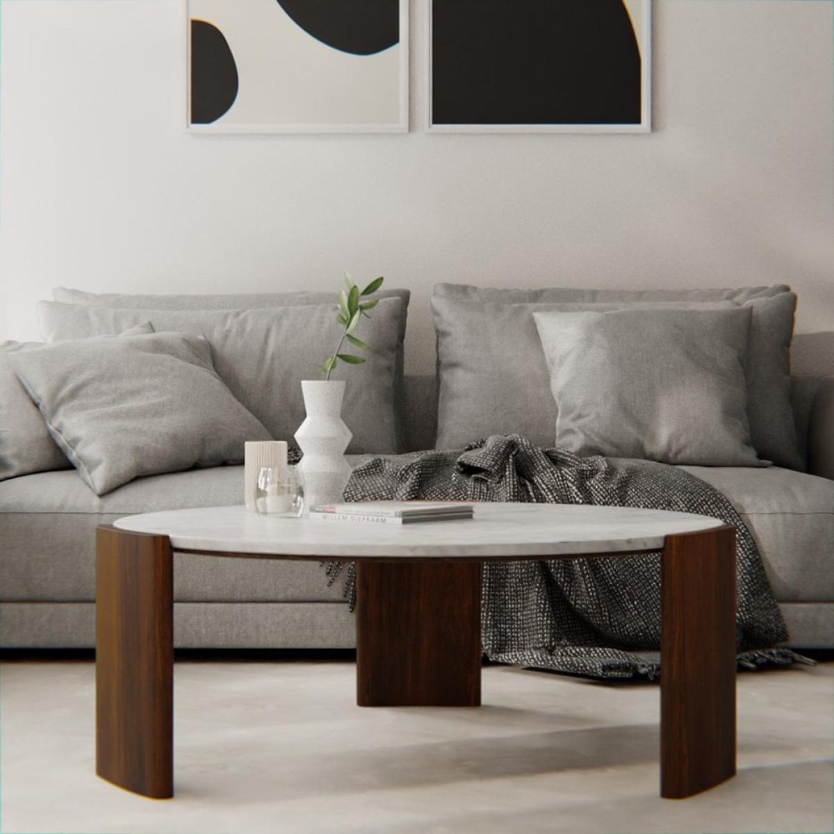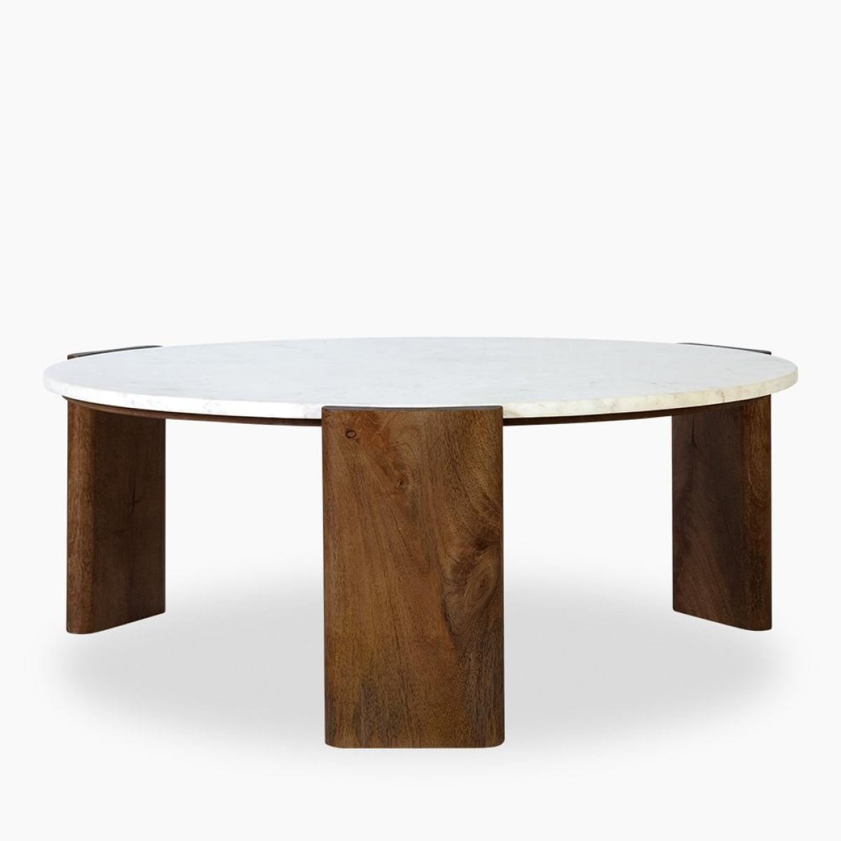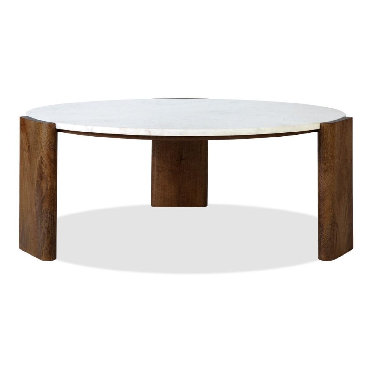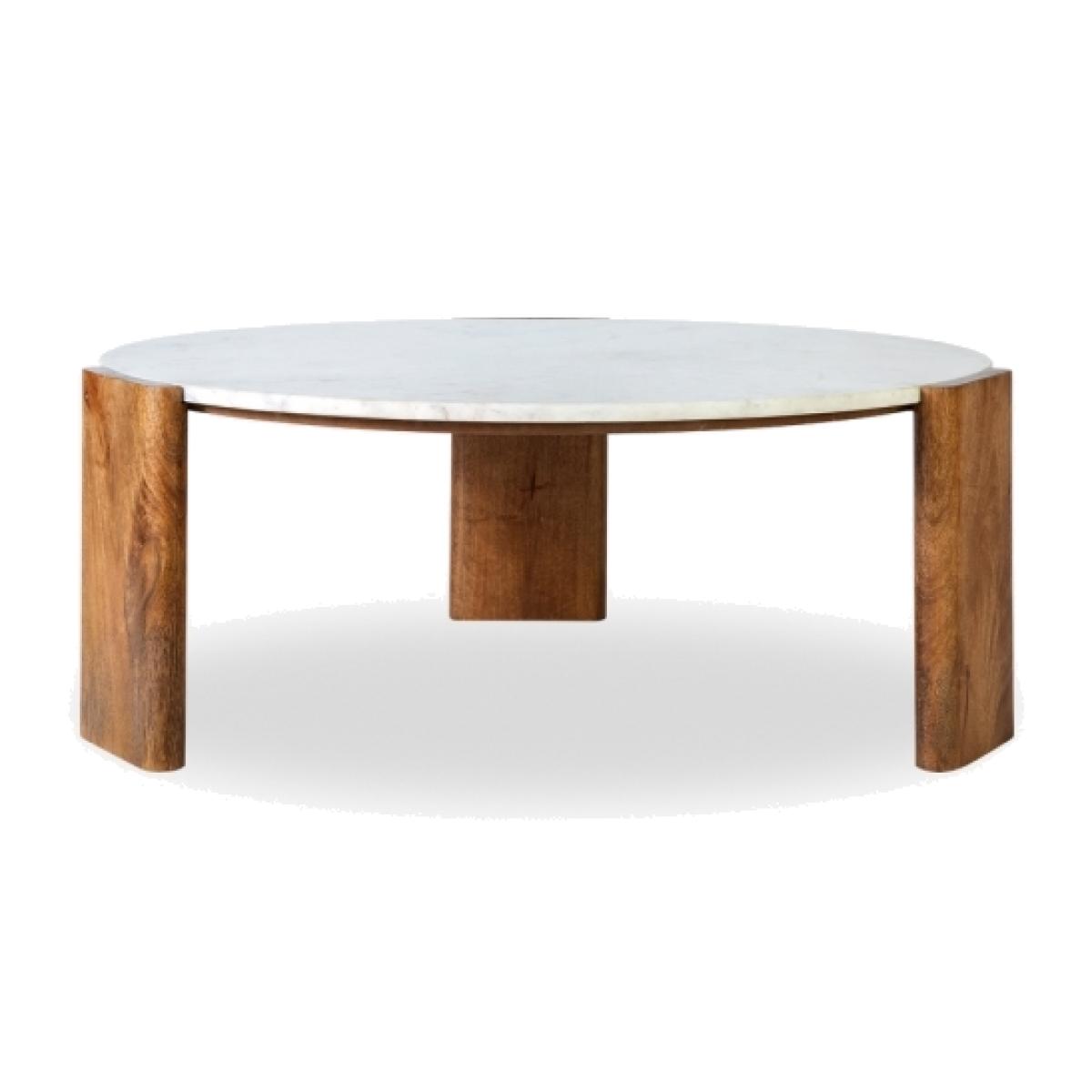 Emil Round Coffee Table, White Marble & Mango Wood