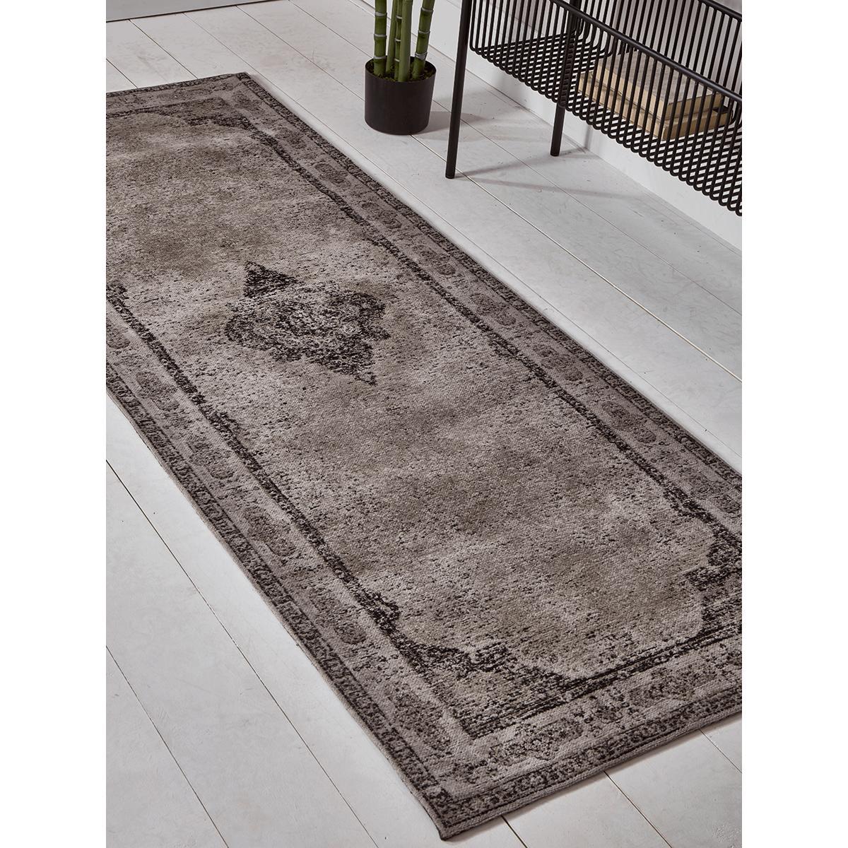 Made from lightweight cotton with a faded, vintage inspired design, our elegant dark grey coloured runner is perfect for a hallway or bedside. This rug has a latex and cotton backing for added grip.