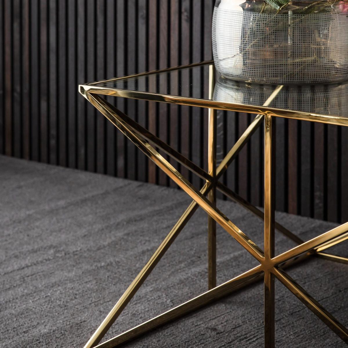 Add a chic sophisticated look to a room with the Parma Coffee Table, with its angular gold metal base and glass top. It looks stunning paired with other pieces from the collection. Parma is also available in silver.