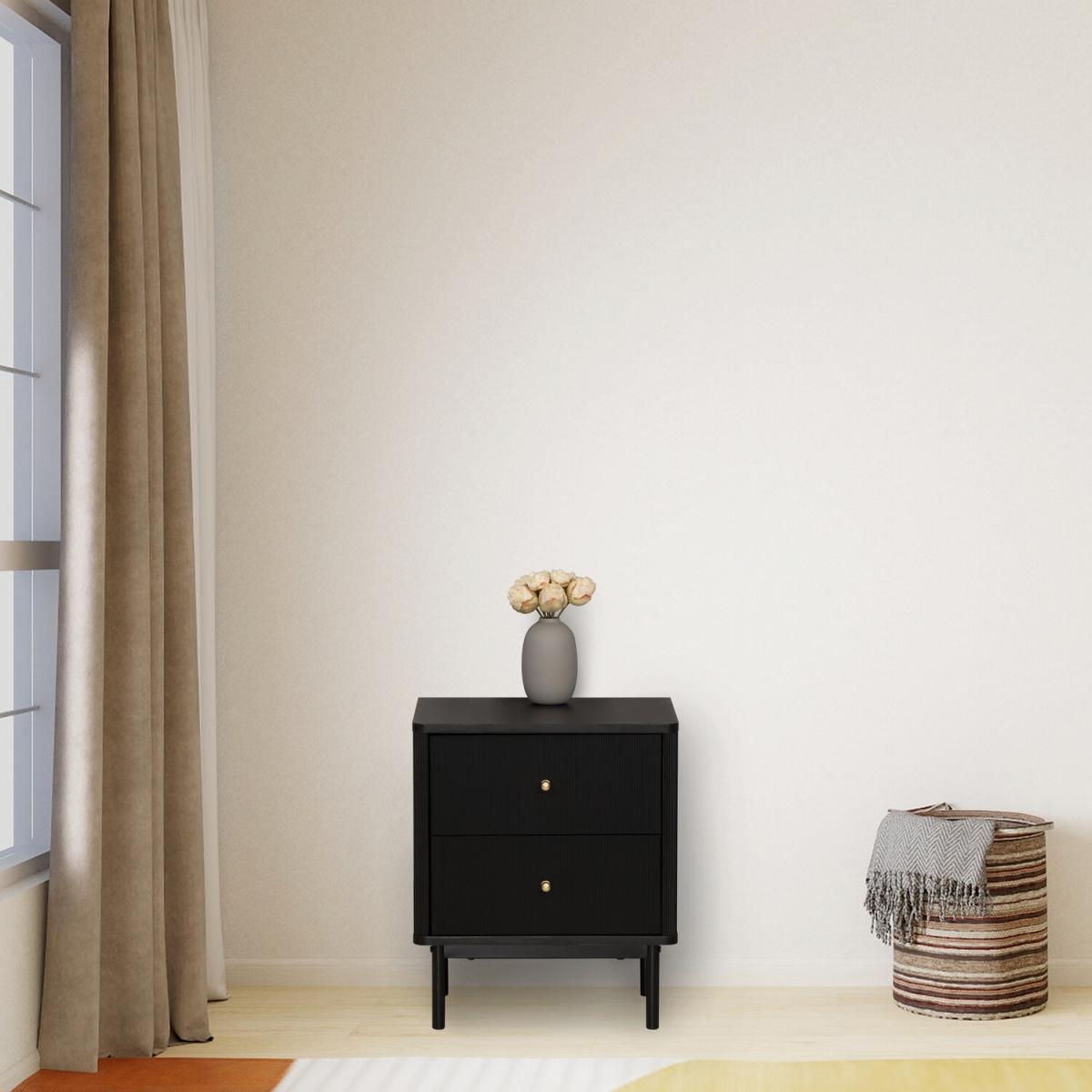 Designed with modern lines and a neutral, monochromatic tone to complement your interiors, the Emilia Bedside Table is the ideal contemporary bedside unit. Placed next to your bed, it is the perfect spot for keeping your alarm clock, a glass of water, and a few more essential nighttime bits and bobs to hand on the tabletop and inside the two spacious drawers. Made from MDF, it will prove easy to assemble and sturdy and comes with sleek round gold handles for a modern finishing touch.
