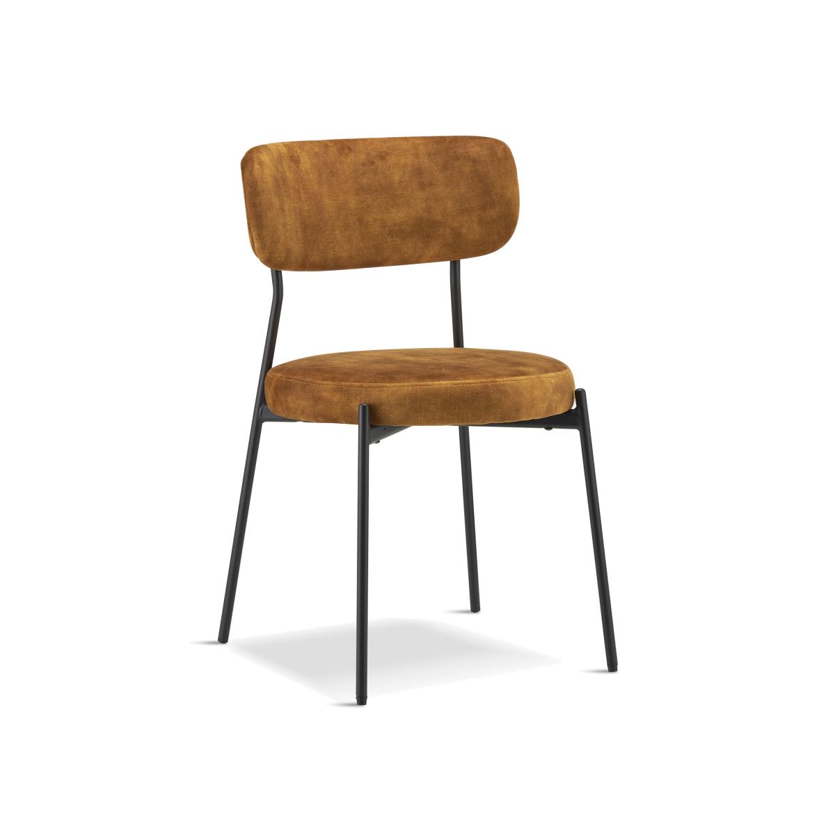 I love this chair for its modern yet versatile aesthetic. The mustard fabric adds warmth and a pop of colour, making it ideal for both contemporary and eclectic interiors. The black metal legs bring a sleek, industrial touch that works well against neutral or muted décors, while also offering durability. Style-wise, it pairs beautifully with wooden or glass dining tables, and can be easily dressed up with cushions or throws for added texture. For practical tips, consider using these chairs to give a dining space a lively, inviting vibe without overwhelming the room - they're perfect for layering with different colour palettes or mixing and matching with other seating styles to create a personalised look.