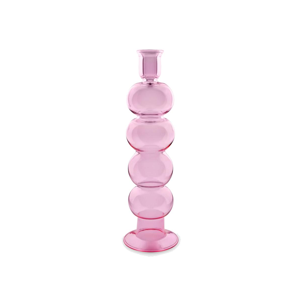 I love this pink bubble candleholder for its playful yet sophisticated look. Its unique shape and colour lend themselves well to both modern and eclectic interiors, adding a touch of whimsy without overwhelming the space. It's particularly effective as a centrepiece on a dining table or as a styling accent on a sideboard or mantel. Practical styling tips include pairing it with minimalist tableware or contrasting textures like natural wood or matte ceramics to let the colour stand out. This piece works well in colour-coordinated schemes or as a pop of colour amidst neutral tones, making it a versatile addition that can elevate a variety of interior styles.