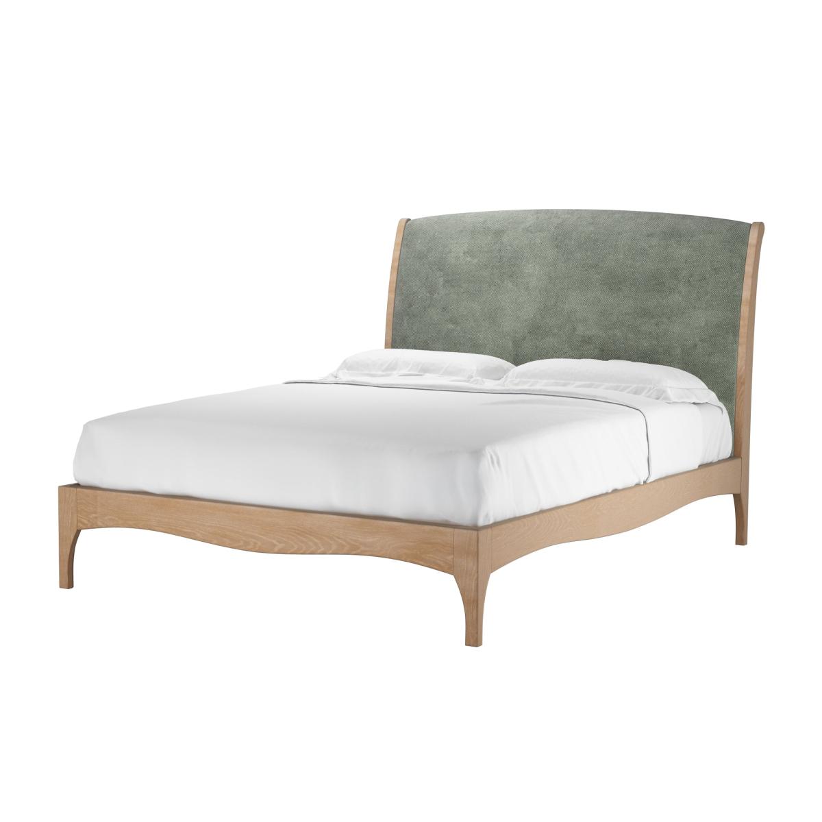 Inspired by French design, our Emilia bed is perfect for those who are after a little elegance in their bedroom and a great night's sleep. Featuring a beautiful exposed oak frame and an opulent soft scrolled semi-upholstered headboard, you can dress Emilia in any one of our fabrics, creating an attractive bed that's easy to incorporate into your current decor, but with a little continental twist!.