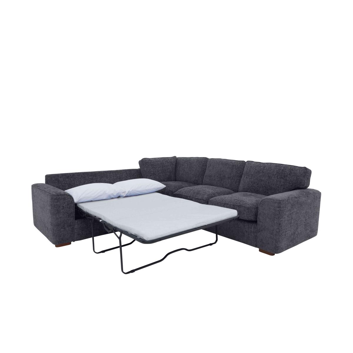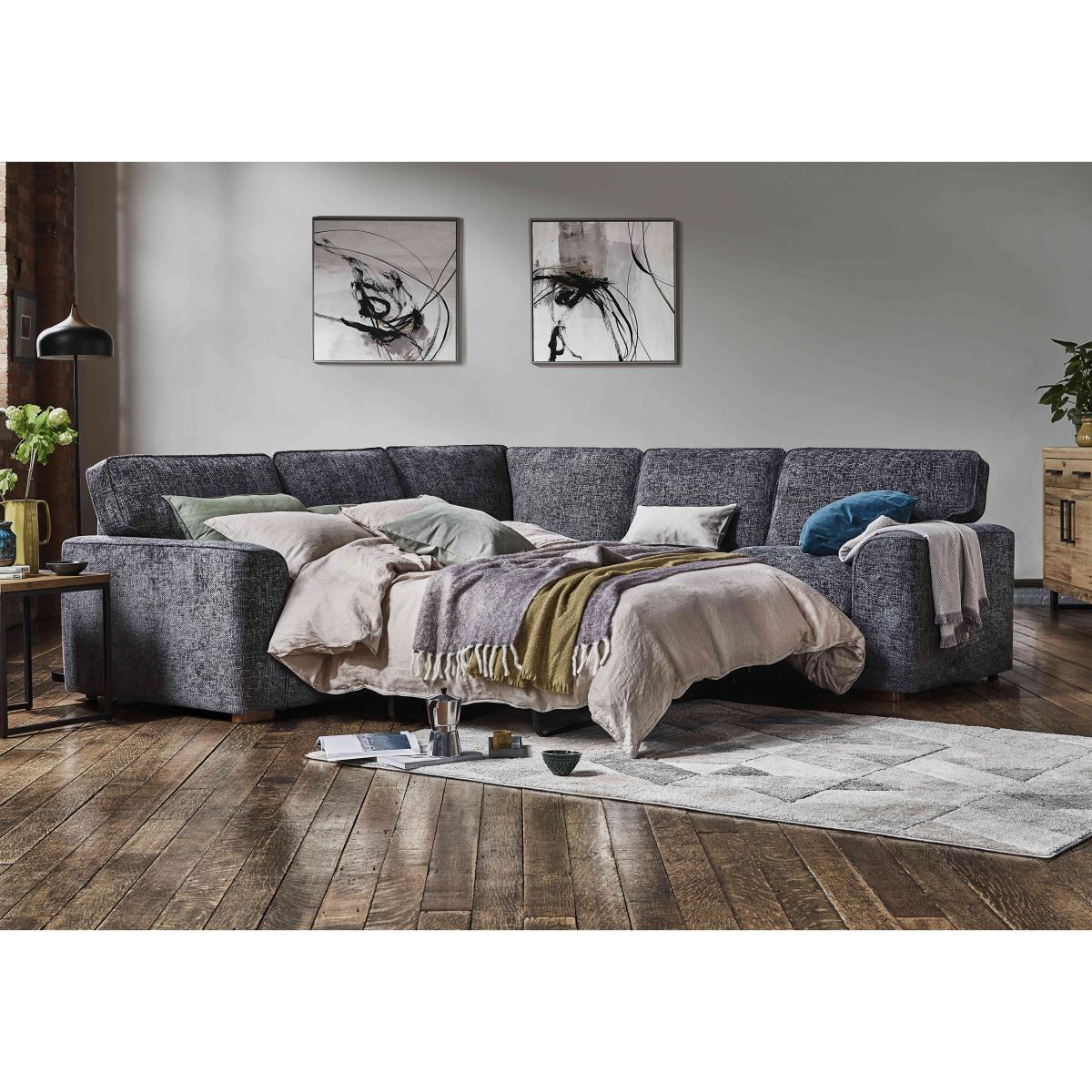 The Emilia range is built for lounging, with sprung seats and squishy cushions that hug you like an old friend. We love the soft hopsack chenille for a tactile upholstery that’s a joy to touch, and the small details like the dark wood feet and curved, cushioned arms are just the cherry on top. And with reversible back cushions, you can reduce wear and extend the life of your sofa or chair. All items in the Emilia range are available with fast delivery, so you can skip the queue and have your perfect sofa delivered sooner than you might think. Handcrafted in the UK exclusively for Furniture Village. Contemporary style, fabulous comfort and plenty of room for overnight guests – is there anything this large corner sofa bed doesn’t have? You’ll appreciate the reversible cushions for comfort that lasts. Why you’ll love it This corner sofa bed is designed for serious relaxation – day and night. Generously proportioned with wide arms and deep seats. And it’s just as appealing to your overnight guests. An easy 3-fold mechanism quickly converts this corner sofa into a sofa bed. Your guests will love its fabulously comfy foam mattress. Super-soft, densely woven hopsack chenille upholstery fabric feels so luxurious. Choose from a range of stylish and sophisticated colours. Dark wood feet. Reversible seat and back cushions mean this sofa bed stays beautiful for longer. Sturdy 9-gauge steel spring seat suspension for exceptional support. Available with the sofa corner on the left- or the right-hand side. Handcrafted exclusively for Furniture Village. Made in the UK. This large corner sofa bed is part of our Emilia range. What you need to know Medium comfort level. Seat suspension: 9-gauge steel springs. Seat cushioning: polyurethane foam. Cushioning is reversible. Back suspension: webbing. Back cushioning: hollow blown fibre. Cushioning is reversible. Arm cushioning: hollow blown fibre. Mattress: foam. Please follow sofa bed opening instructions carefully. Forcing the mechanism will cause damage. This sofa bed’s ratchets will make a clicking sound while being adjusted. This is not a fault. Upholstery will be slightly relaxed to facilitate sofa bed mechanism. This corner sofa bed will be delivered in 2 pieces. Please measure carefully to ensure adequate access for our delivery team. Plump, turn and rotate seat and back cushions to promote longer cushion life. Some fabrics can show wear on areas of more use or in direct sunlight. Pile crush and shading are natural characteristics of chenille. Clean regularly using a soft brush or vacuum with the curtain attachment. Deal with any spills promptly. Professional cleaning advised for oil- and grease-based stains. Please read our upholstery care guide for more advice. Item code: EMLILSB-MNK-001
