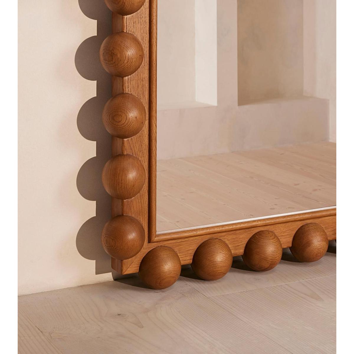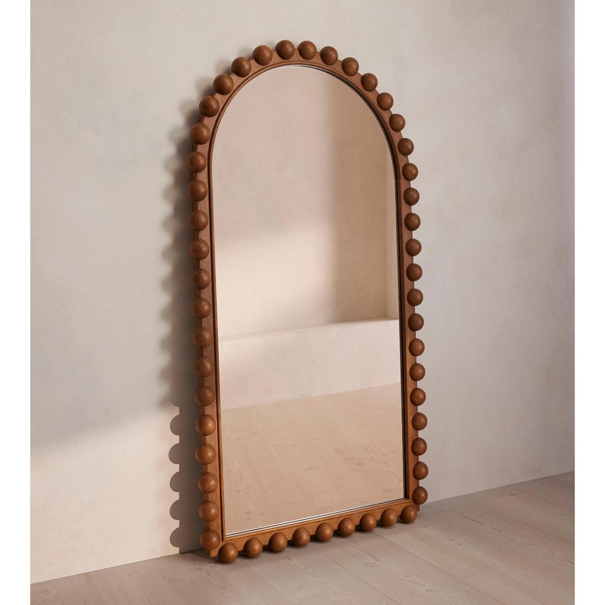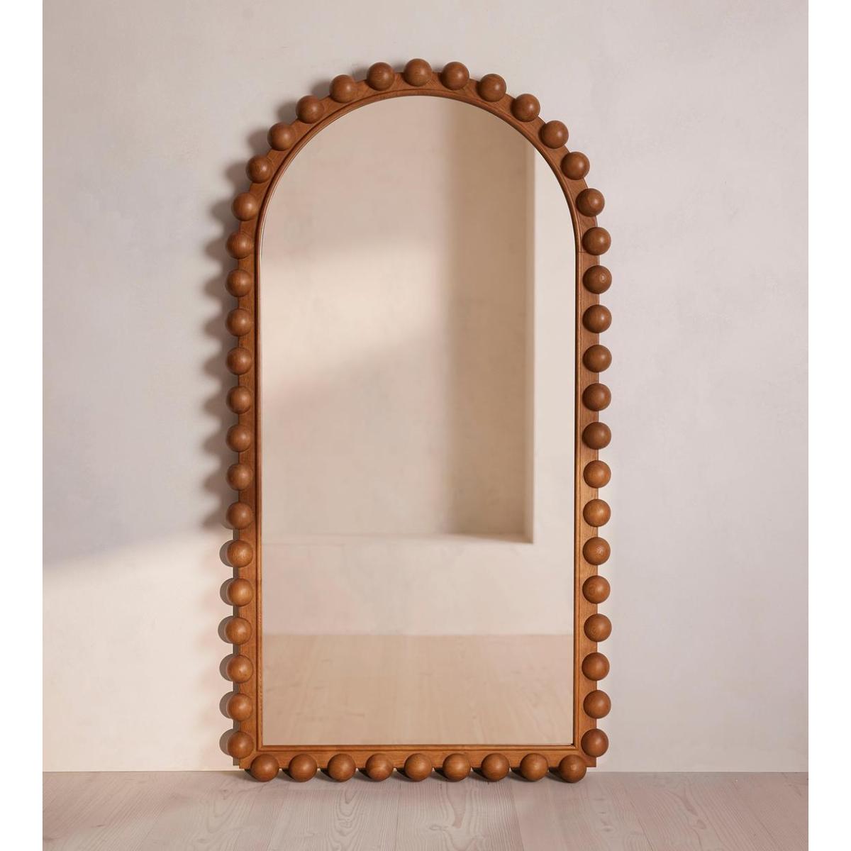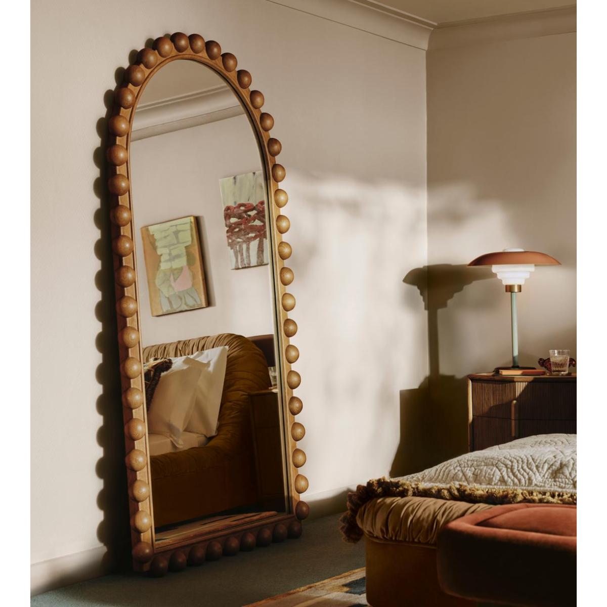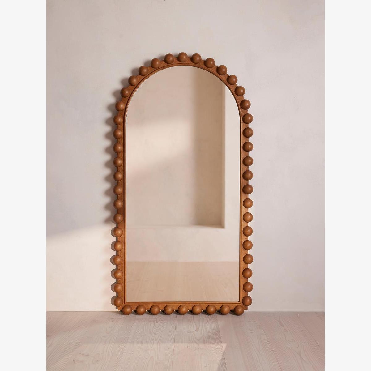An oversized, arched frame is characterised by carved bobbin detailing. A centrepiece for your living space or bedroom, the floor-standing Emilia mirror is inspired by the curved silhouettes seen throughout Soho House Rome. Crafted from solid mid-tone ash, its arched frame is characterised by carved bobbin detailing.