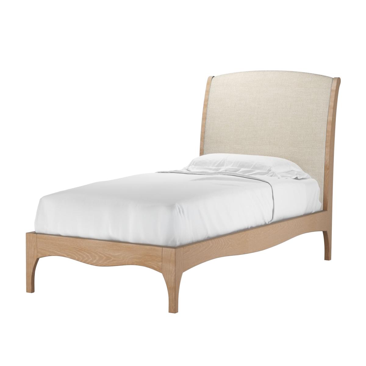 Inspired by French design, our Emilia bed is perfect for those who are after a little elegance in their bedroom and a great night's sleep. Featuring a beautiful exposed oak frame and an opulent soft scrolled semi-upholstered headboard, you can dress Emilia in any one of our fabrics, creating an attractive bed that's easy to incorporate into your current decor, but with a little continental twist!.