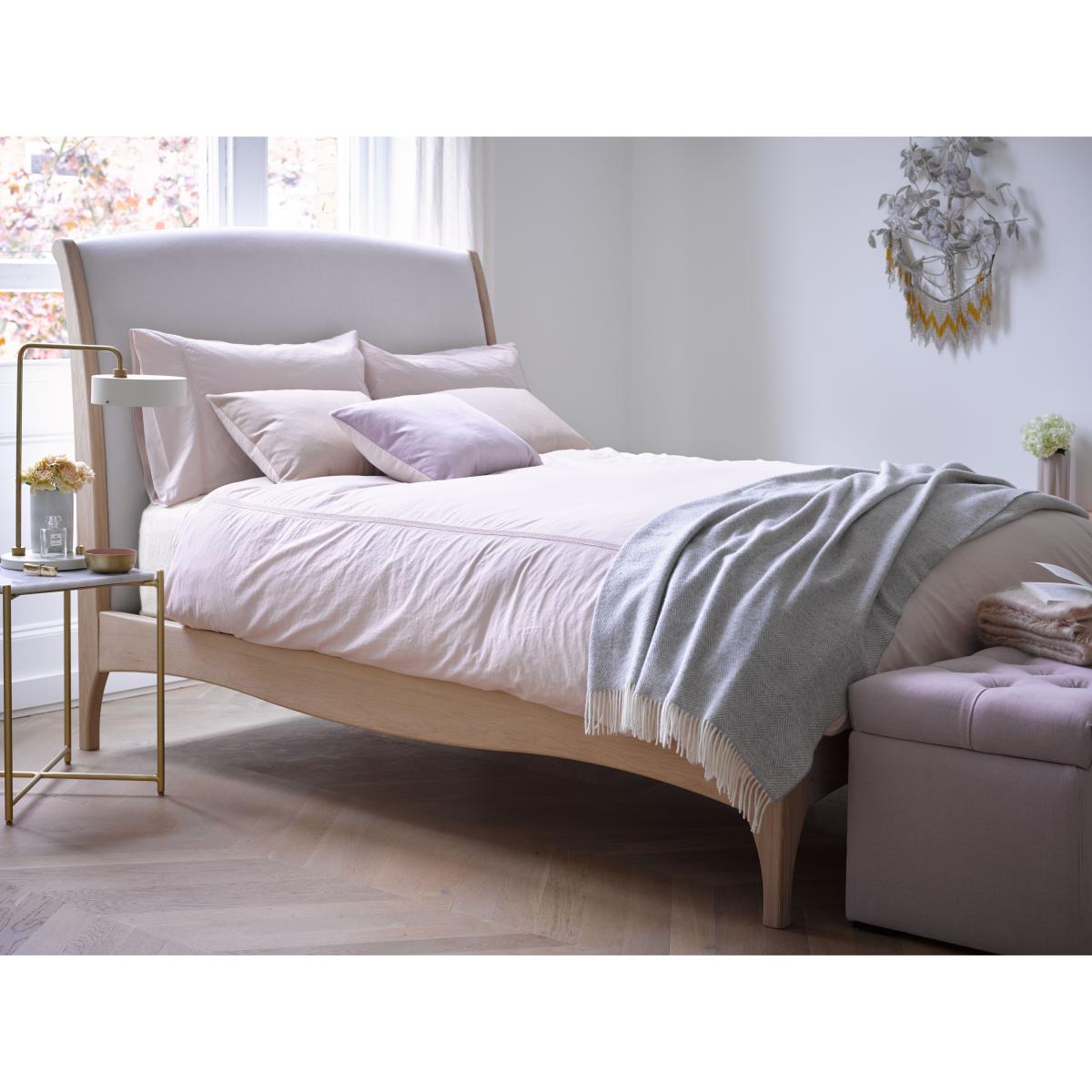 Inspired by French design, our Emilia bed is perfect for those who are after a little elegance in their bedroom and a great night's sleep. Featuring a beautiful exposed oak frame and an opulent soft scrolled semi-upholstered headboard, you can dress Emilia in any one of our fabrics, creating an attractive bed that's easy to incorporate into your current decor, but with a little continental twist!.