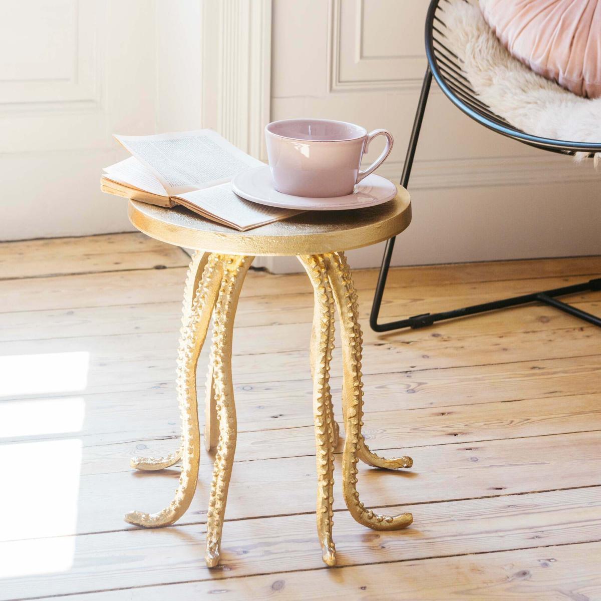 A nautical treasure, Emilio the octopus is crafted from aluminium and finished in gold to display your coastal finds and current reads.
