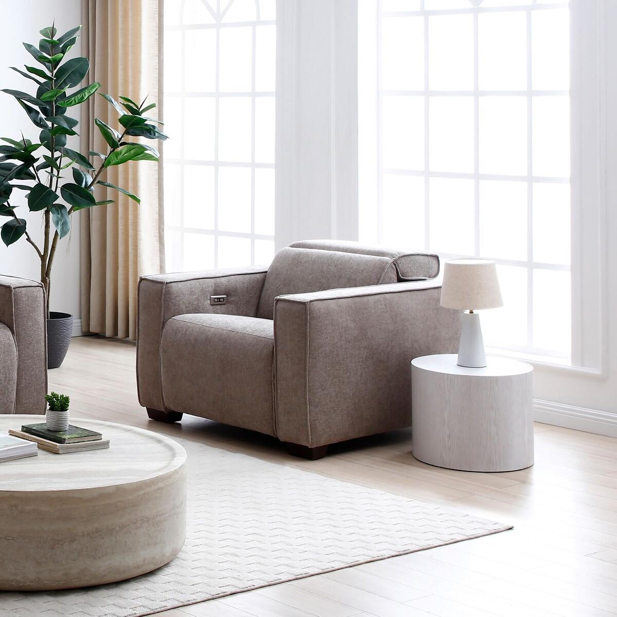 Designed for laid-back lounging, this modern electric recliner chair makes relaxation effortless. Upholstered in soft chenille fabric, it’s as cosy as it looks, with a deep, supportive seat that’s made for sinking into. With independent controls for the backrest and headrest, you can find your perfect position with just the touch of a button—whether you're sitting upright with a book or fully reclined for a snooze. Perfect for living rooms, snug corners, or home cinemas, this contemporary recliner chair is all about comfort, without compromising on style. Product details • Electric recliner chair with adjustable headrest and footrest • Discreet control buttons are neatly placed on the inner arm, keeping things sleek and fuss-free. • Woven chenille upholstery • Soft comfort level for the ultimate in lounging • Square arm design for added practicality • Eucalyptus wood frame • Foam filled seat and back • Partial assembly required (legs/feet only) • Care advice: specialist upholstery cleaner recommended • 12 month manufacturers warranty. Product Composition - Frame - Eucalyptus & Poplar Wood Fabric - 100% Polyester. Seat - Fabric + Foam + Wood + Polyester Pad Product Dimensions • Seat Height: 48 cm • Seat Depth: 58 cm • Seat Width: 62 cm • Arm Height: 64 cm • Clearance to floor : 6 cm • Back Height: 57 cm • Total Dimensions - 88 cm x 108 cm x 89 cm, Weight 58.2 kg. Package Dimensions - 108 cm x 108 cm x 72 cm, Weight 66.92 kg. This product will be dispatched by one of our trusted suppliers. You’ll be contacted by their selected courier about your delivery. Please note: this product cannot be delivered to all Offshore Islands, Northern Ireland or Republic of Ireland.