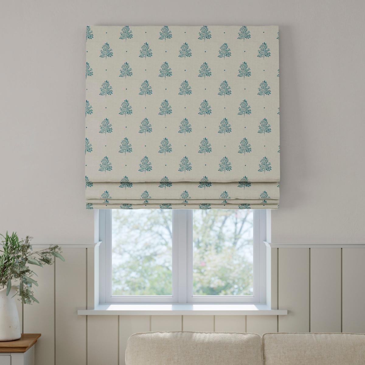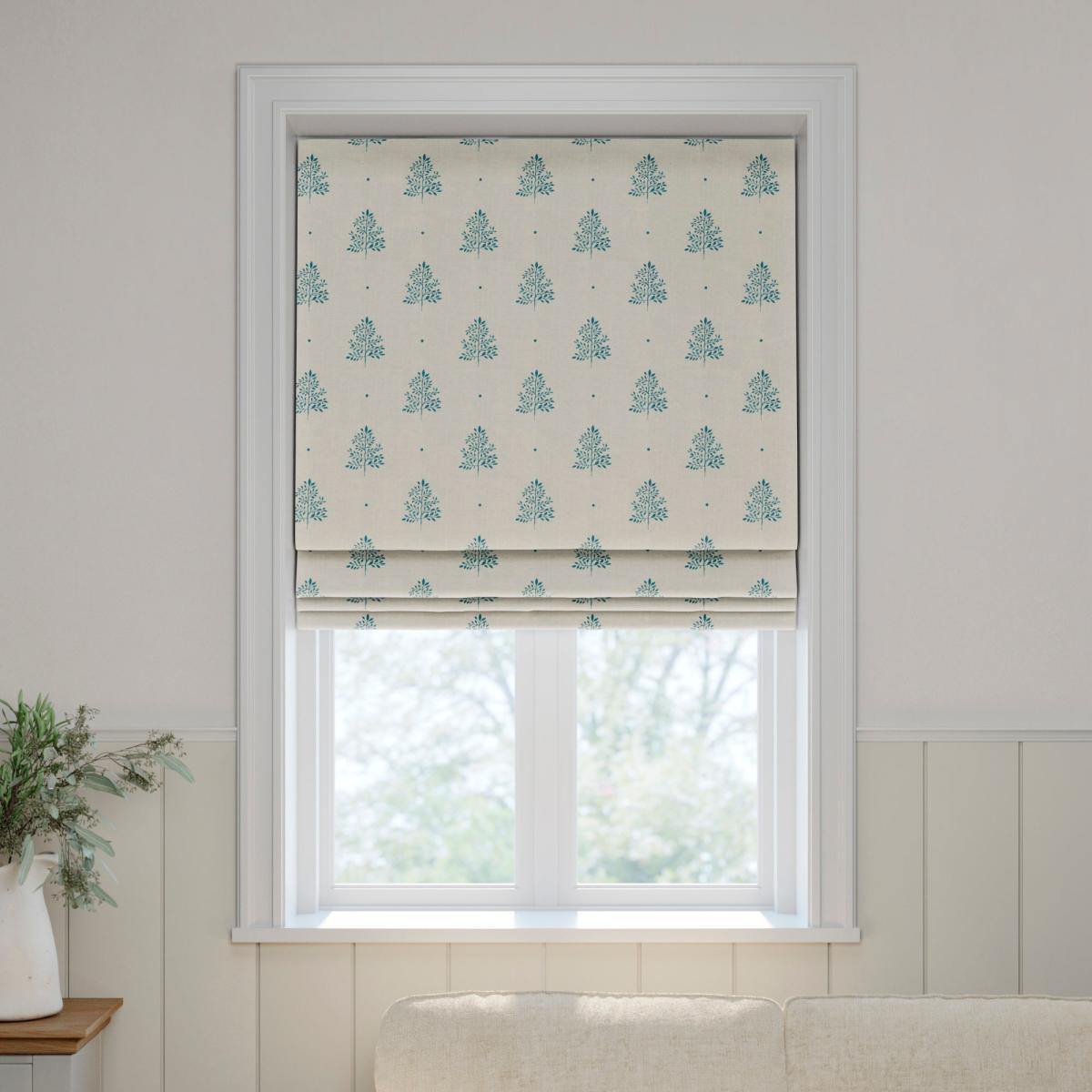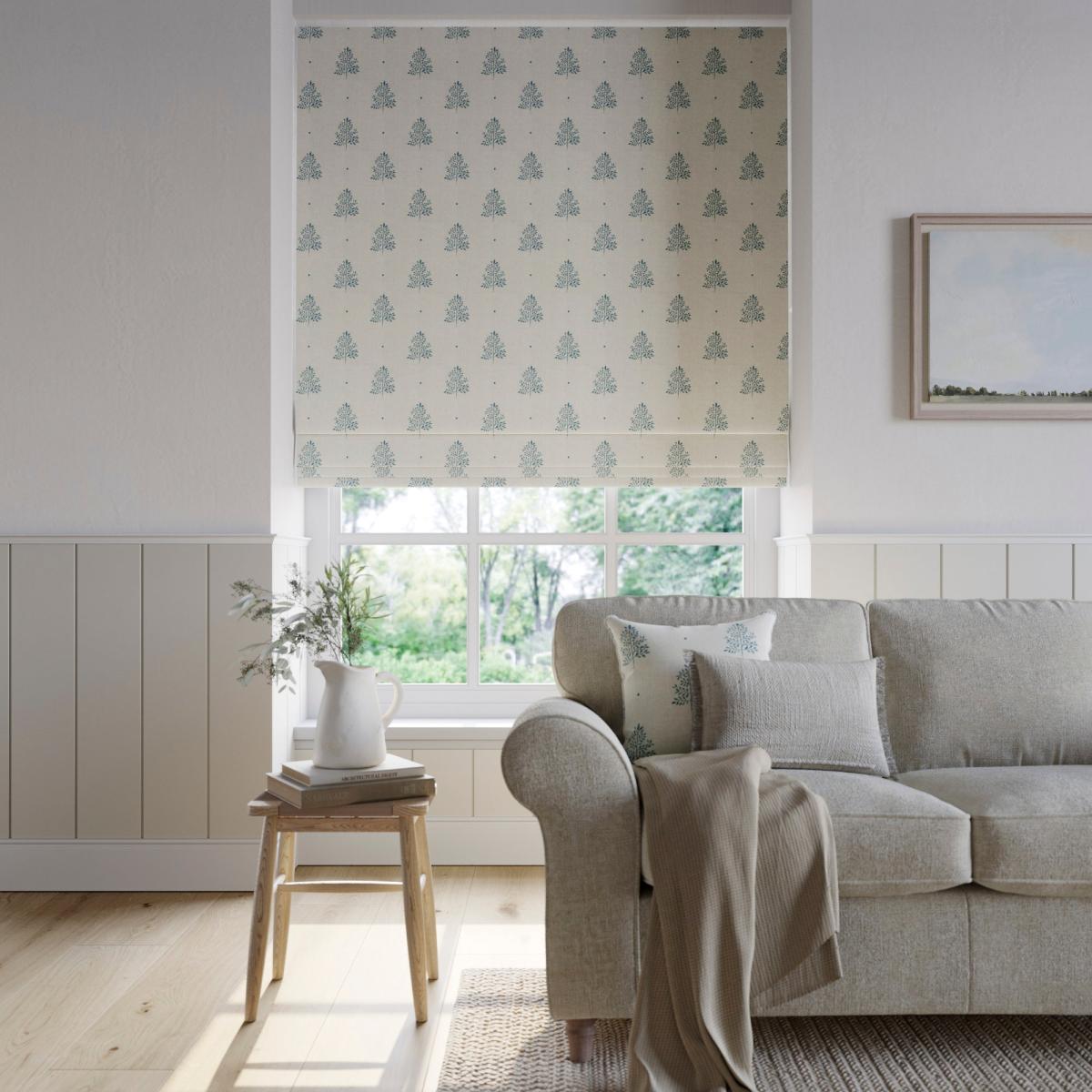 * Robust 100% Cotton composition with a linen-look finish* Block print Tree design inspired by nature* Choose from 3 linings* Select your fitting type* Pick a side for the operating chain* Coordinating Made to Measure and Made to Order items available to purchase separately Inspired by the rustic charm of rural Bristol, Emily Bond brings a farmhouse aesthetic to her designs. The Zachary range, created in collaboration with Dunelm, is crafted from a sturdy and durable 100% cotton base with a linen-look finish. Customize your blinds with a choice of three lining options—regular, blackout, or thermal—tailored to your needs for light control and insulation. Choose your preferred fitting type and chain position for easy operation and a perfect fit. Pair with coordinating Made to Measure items for a cohesive, polished look throughout your home.**Choosing your lining:*** Blackout provides minimal light disturbance in your home making it perfect for bedrooms. * Thermal helps to keep the warmth in and the cool air out meaning it’s great for family rooms or lounges. * Our Standard Lining is perfect if you like the glow of natural light whilst your curtains are closed whilst still maintaining your privacy.**Choosing your fitting type:*** Inside the recess: this gives a tidy, snug finish as it’s made to fit your window exactly. * Outside the recess: this option is great if you don’t want the blind to be visible from the outside when it’s drawn up.**Choosing which side you’d like the operating chain:*** Think about where your blind will be situated and what furniture may be near it – choose the side that is easier for you to access.**Need help deciding or measuring?**Book a free appointment with one of our consultants! dunelm. com/category/made-to-measure/book-an-appointment).**Child Safety:**We add clips to the back of our roman blinds to attach the cords to the fabric. They also double up as a child safety feature. If pressure is exerted the clips will detach to prevent the risk of strangulation. Please read our [Blinds Safety Guide](https://www. dunelm. com/info/buying-guides/blinds-safety-guidance) for more information. If the clips detach accidentally during normal use, they can be easily re-clipped back into place.**Please note:** If your measured width is over 130cm your blinds may come with a fabric join to provide the full width required.