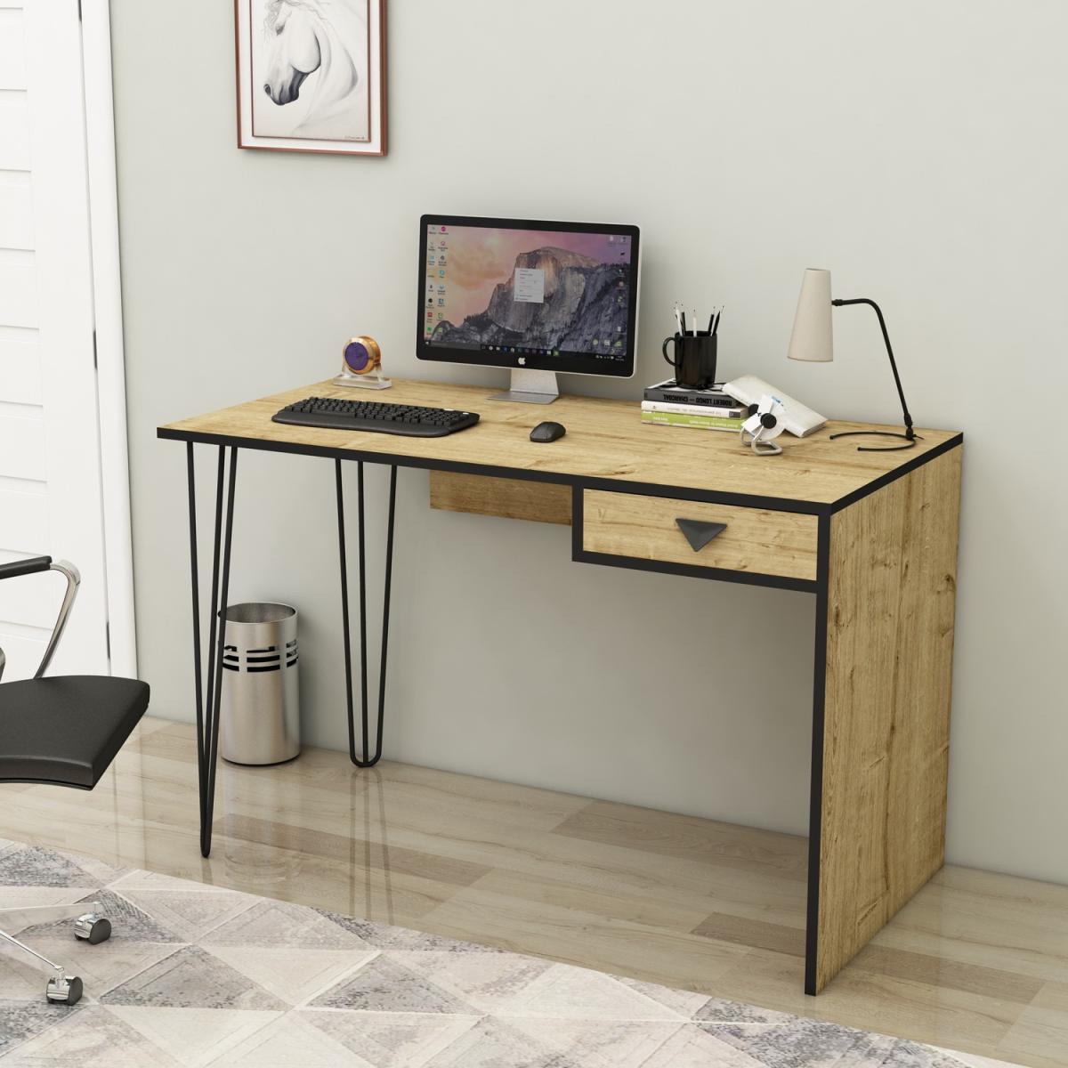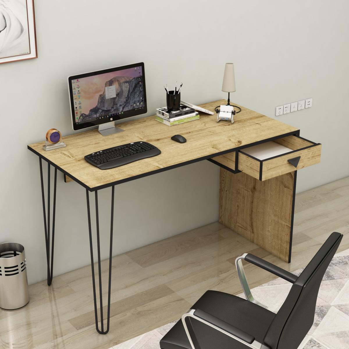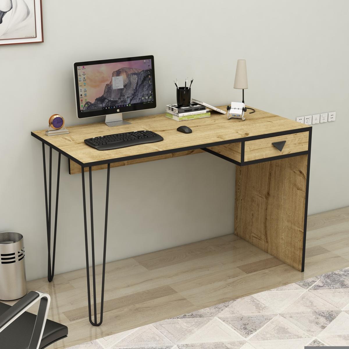 Emily Computer Desk with Drawer - Sapphire Oak & Black