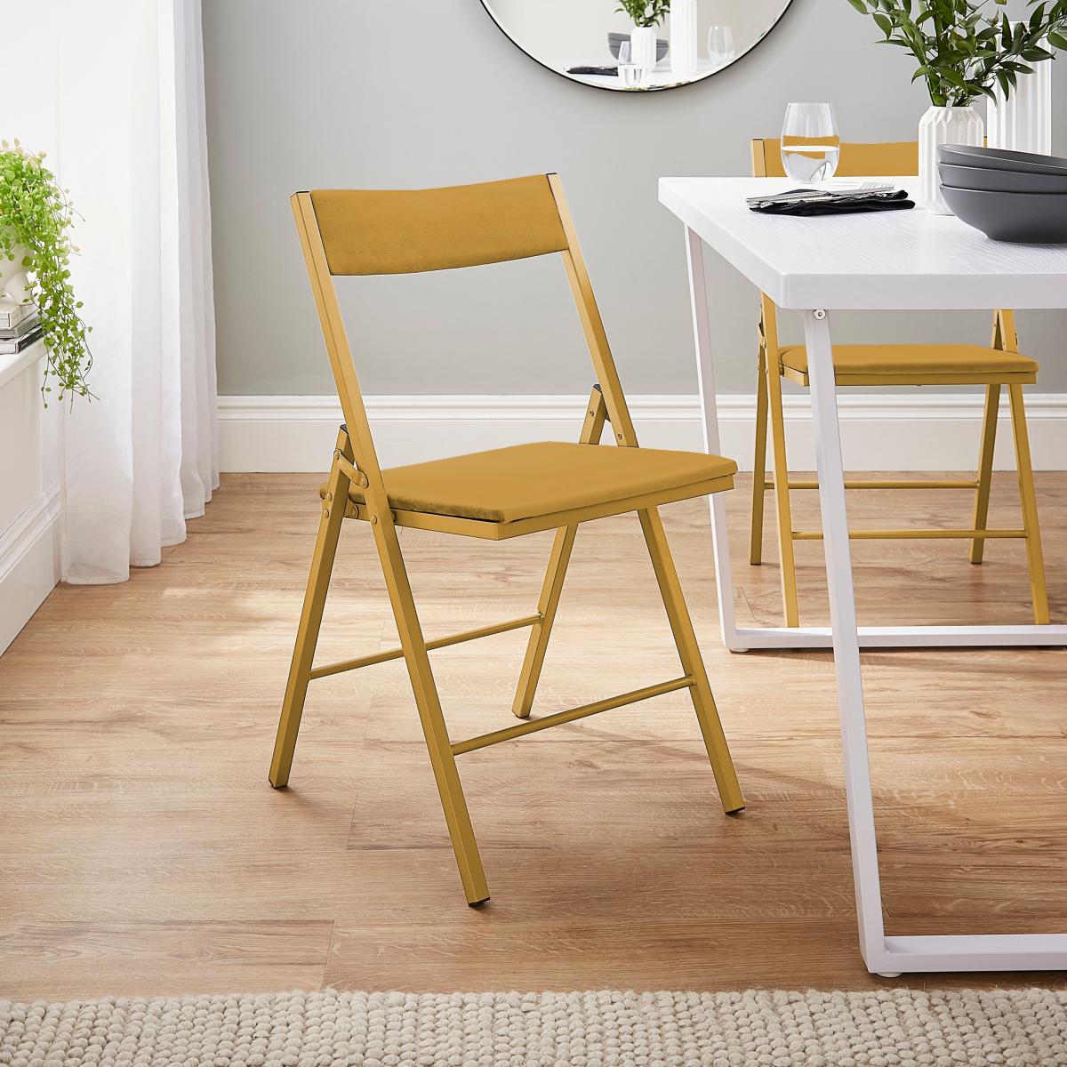 Emily Folding Dining Chair, Velvet Velvet Old Gold