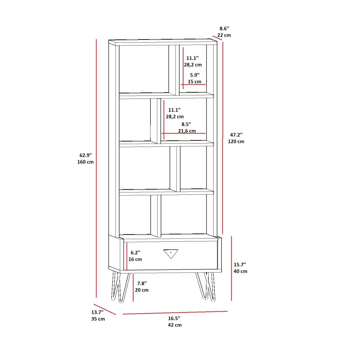 This bookshelf will provide you with multiple storage shelves for your books. Also, you can store your utilities in a drawer it contains. MATERIAL The bookcase shelf is made of an 18 mm thick quality melamine-coated particleboard. The manufactured wood surface is water-resistant to some extent and the edges are banded with PVC edge banding tape. First-class assemblyinstallation hardware and accessories are used. Our products are produced from certified quality raw materials that do not contain carcinogenic substances and comply with European Union health norms. CLEANING You can clean your furniture with a damp cloth. Avoid prolonged contact with your product with copious amounts of water. ASSEMBLY The product will be delivered to the customer in the original package as disassembled. It is designed to be assembled by the customer using a power drill and screwdriver. Assembly instruction and installation hardware are included in the package. For fast and error-free installation, product parts are numbered with stickers in accordance with the assembly guide.