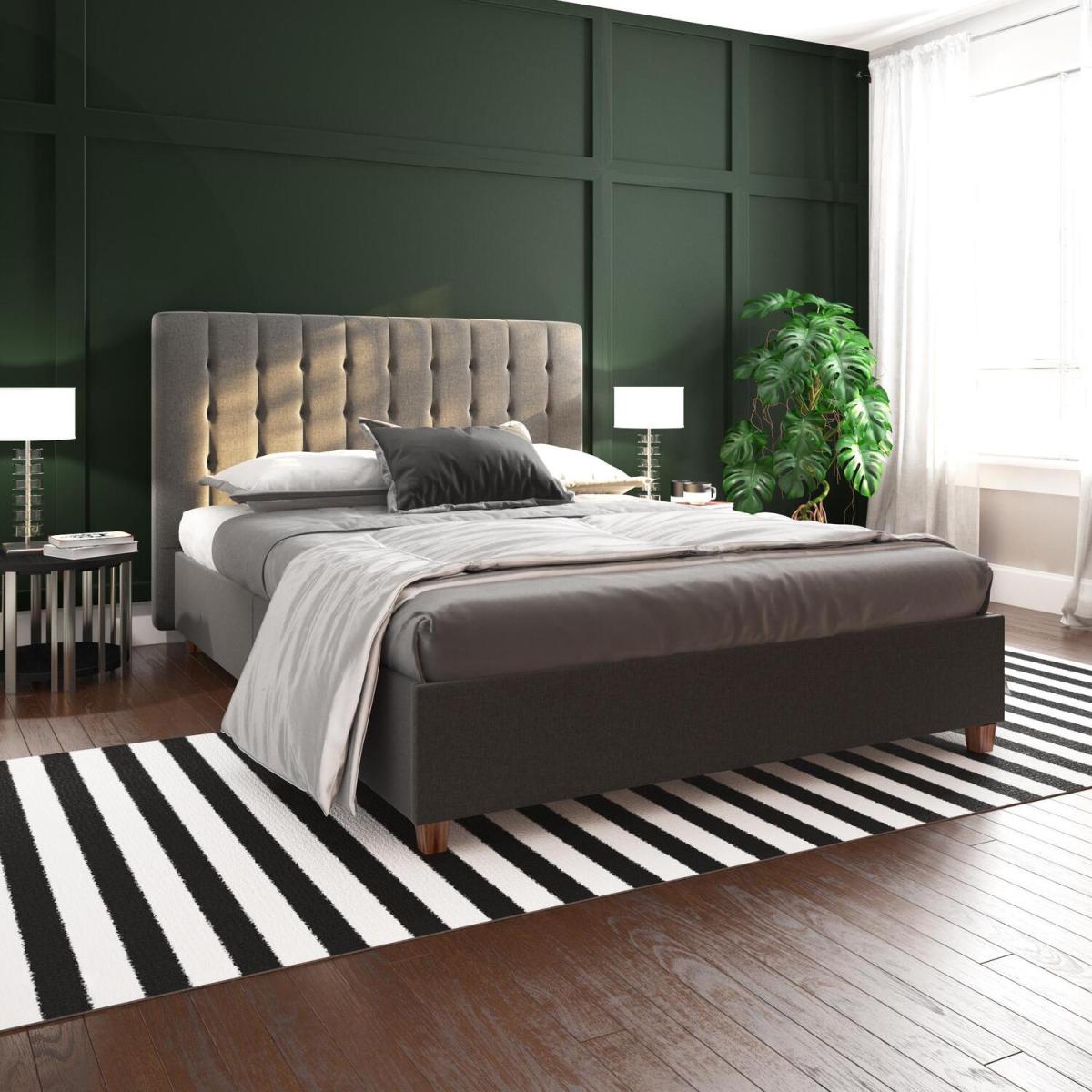The Emily Upholstered Bed has a versatile contemporary style that oozes comfort and elegance. The Emilys linen upholstery and button-tufted details make you want to cozy up in a blanket and spend your Saturday reading a good book. Easy to assemble, the wood frame is reinforced with a bentwood slat system and metal center legs to ensure this bed will stay with you for years to come.