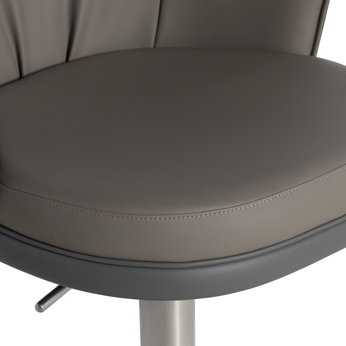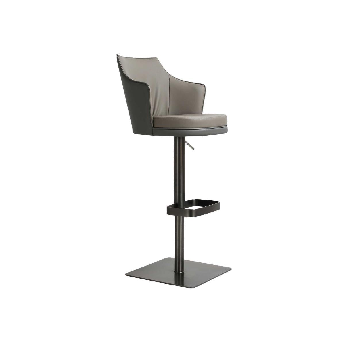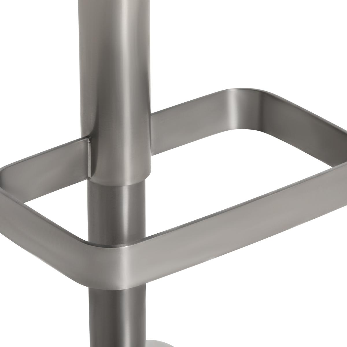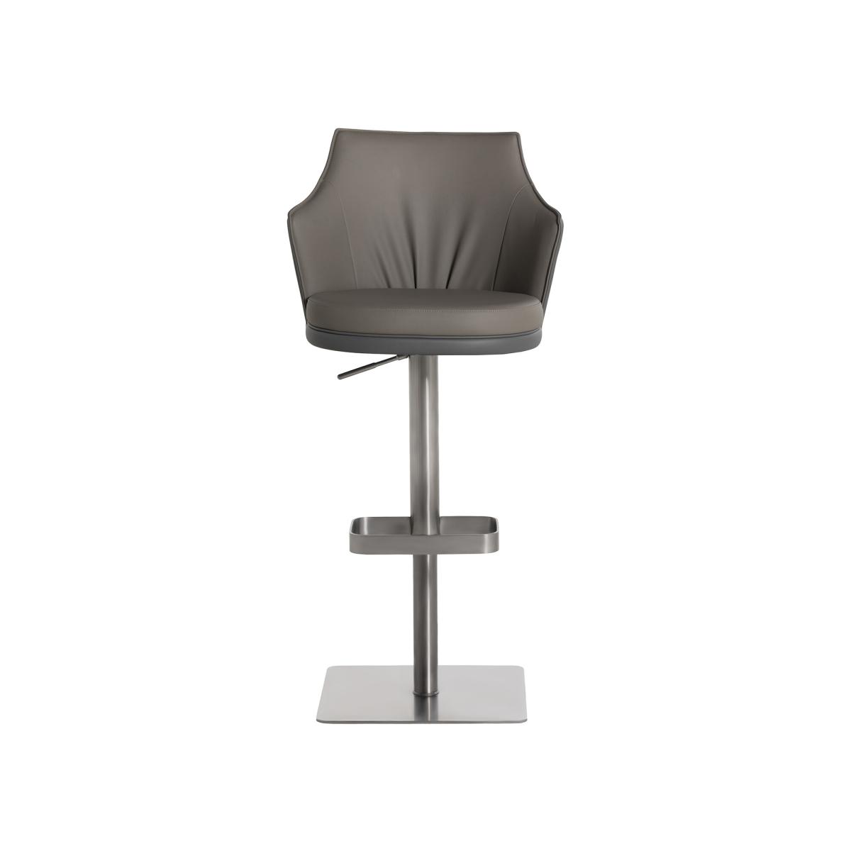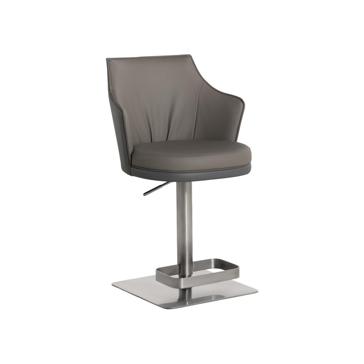The Emin Grey Faux Leather Barstool with Stainless Steel Base exudes modern elegance and superior comfort. Its smooth grey faux leather upholstery adds a refined touch to any space, while the ergonomic high backrest and square footrest provide ultimate support. The sturdy stainless steel base ensures durability and features a sleek, matte finish that enhances its contemporary design. With adjustable height and a 360-degree swivel, this barstool is as versatile as it is stylish, making it perfect for both kitchens and bar areas. Ideal for creating a sophisticated seating experience.