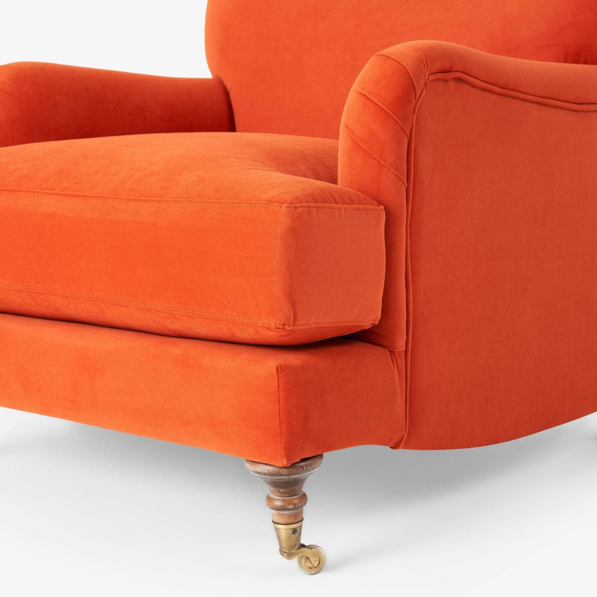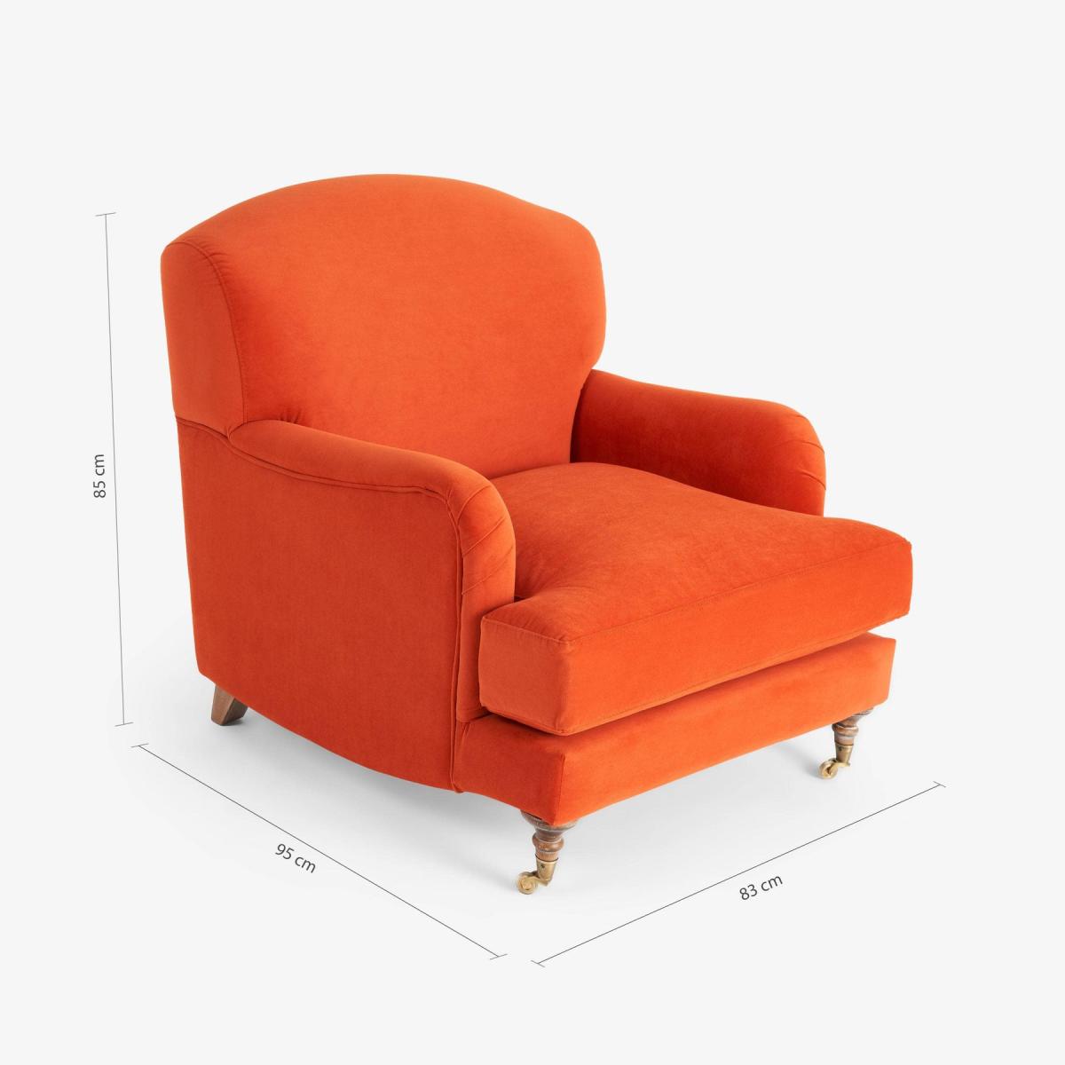With our Emin armchair, you can create a cosy atmosphere full of character and charm. This accent chair's vintage-inspired shape will make any room feel more welcoming. It has a hand-stitched button back, foam filling for added softness, and pleated round arms for a refined look. For timeless elegance, this chair has opulently traditional wooden legs in front and gleaming bronze castors. This charming armchair will add a vintage-inspired touch to your bedroom or living room and can be paired with the Emin sofa from the same collection. For spills, the chair has detachable seat cushions with removable covers. Emin is flame retardant-certified and complies with UK safety regulations.