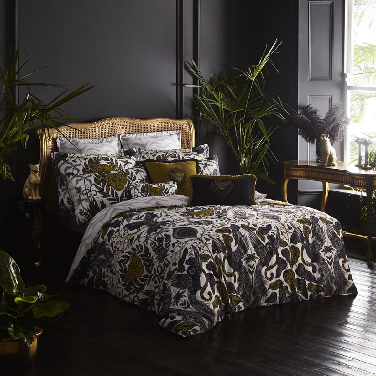 The Emma J Shipley duvet cover adds a luxurious touch with its bold gold pattern, making it a great statement piece in both modern and eclectic interiors. I love how it combines richness and sophistication, especially in darker or moody colour schemes like charcoal or navy. It pairs well with crisp white sheets to let the pattern stand out or darker tones for a more dramatic effect. Practical tips include balancing it with understated accessories to let the duvet be the focal point or adding metallic accents in cushions or lamps for a cohesive look. This cover works particularly well in bedrooms where you want a touch of luxe without overwhelming the space.
