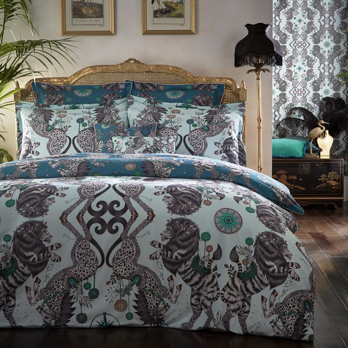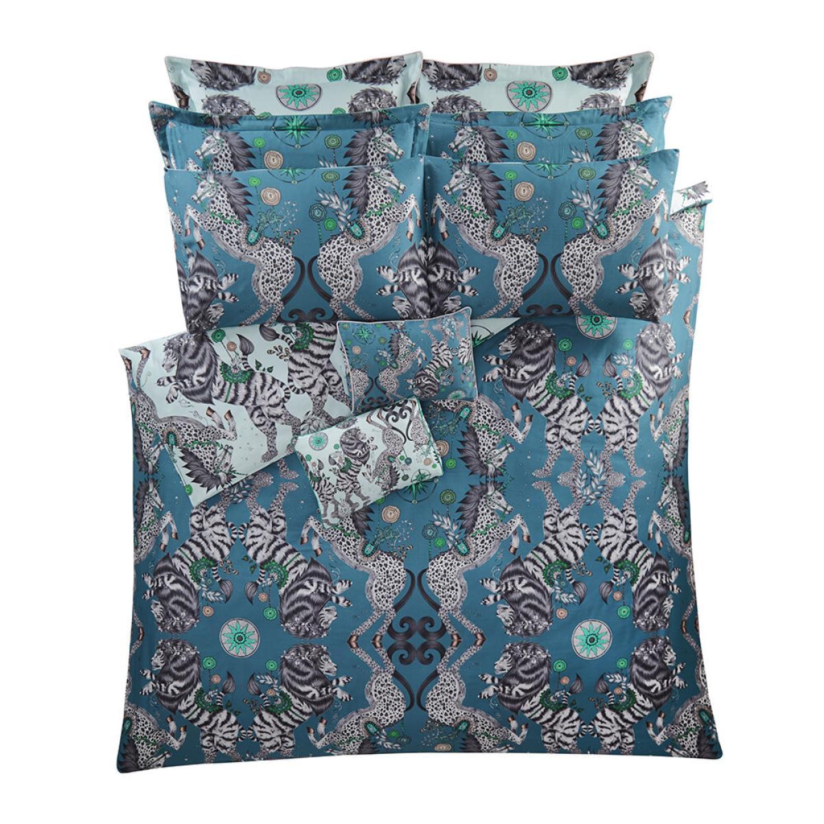 Take a walk on the wild side in the bedroom with this Caspian duvet cover from Emma J Shipley. In rich shades of blue and teal, this duvet cover is decorated with majestic lions and unicorns. Inspired by C.S Lewis' world of Narnia, it's made from cotton and the design is reversible. Key features: * Duvet cover * Material: 100% cotton * Dimensions: 230x220cm * Soft 200 thread count * Whimsical lion and unicorn design * Inspired by C.S Lewis' world of Narnia * On a pale blue background * Deep teal reverse * Made in Spain * Machine washable * Pillowcases available separately