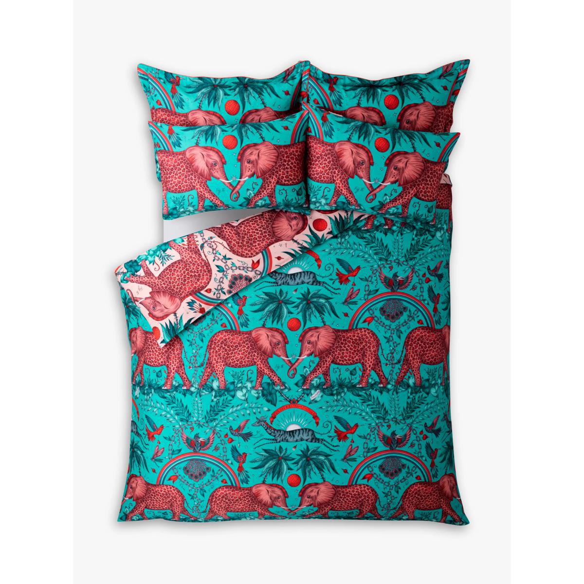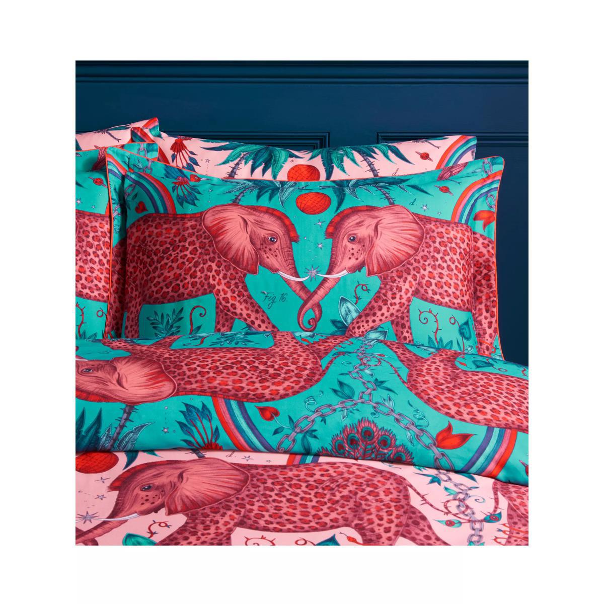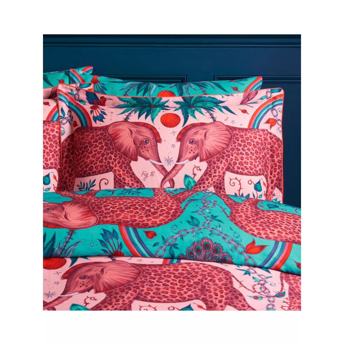 Inspired by Emma's travels to Botswana, striking leopard-spotted elephants take centre stage in this design. Pillowcases are reversible with different designs back and front. Please note that duvet covers and pillowcases are sold separately and not in sets. Standard pillowcases are sold in pairs. Standard pillowcase to fit 50cm x 75cm Oxford pillowcase to fit 50cm x 75cm plus frill Double duvet cover to fit 200cm x 200cm Kingsize duvet cover to fit 230cm x 220cm Super kingsize duvet cover to fit 260cm x 220cm