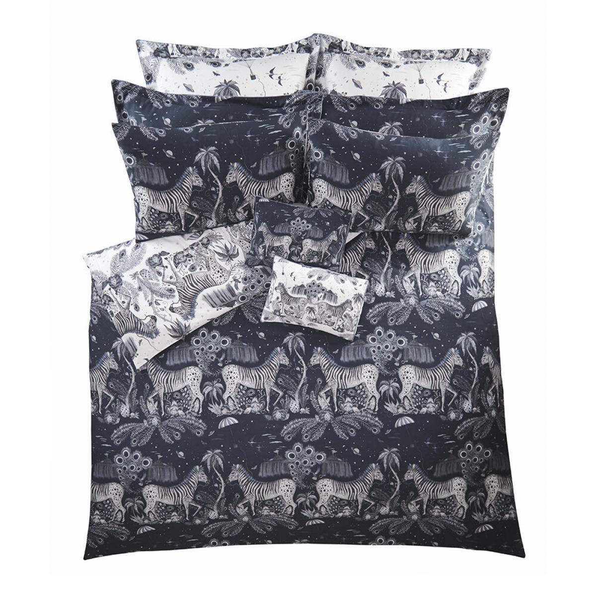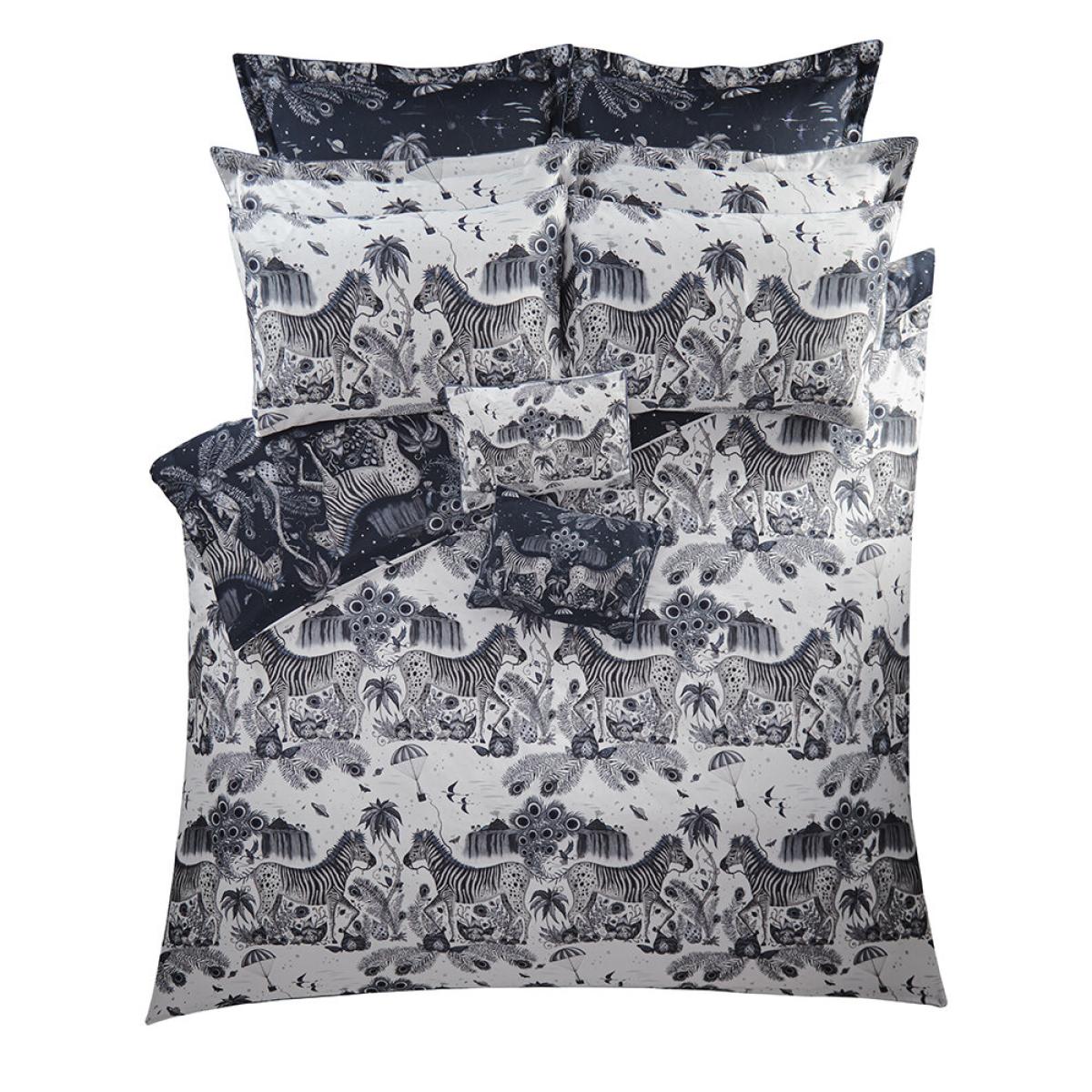 Take a walk on the wild side in the bedroom with this Lost World duvet cover from Emma J Shipley. Filled with a dream-like scene of peacock-tailed zebras, this duvet cover is made from soft 100% cotton with a 200 thread count. In deep navy and white, the colours are flipped on the reverse and matching pillowcases are also available.