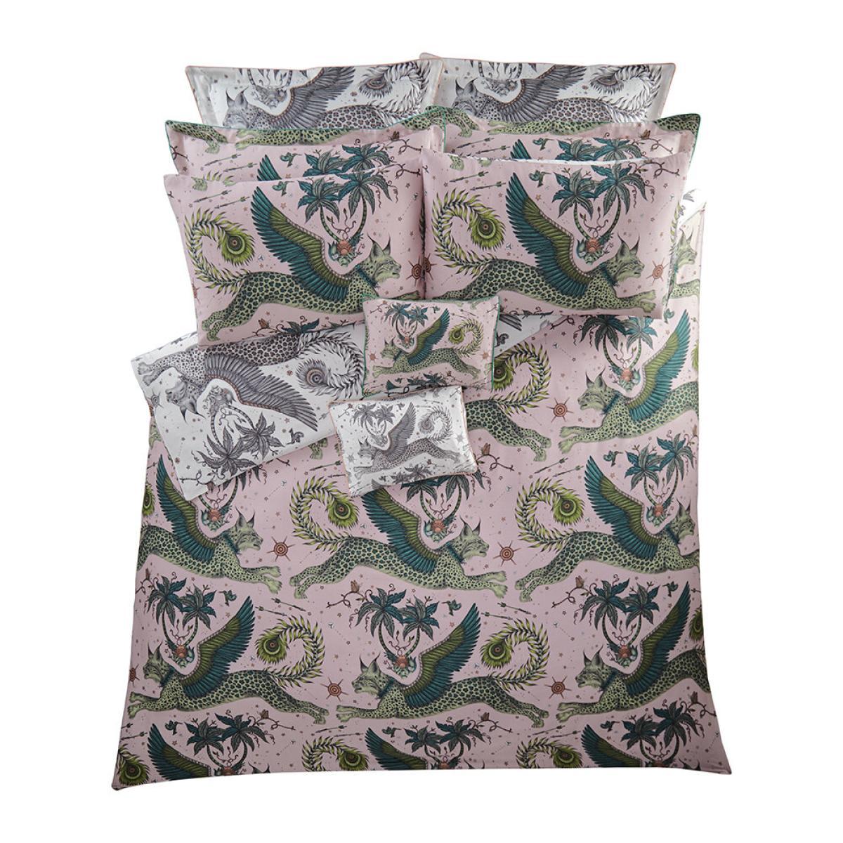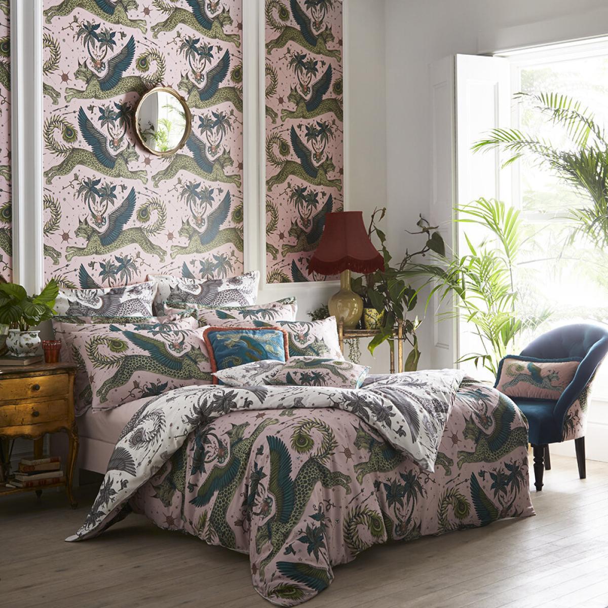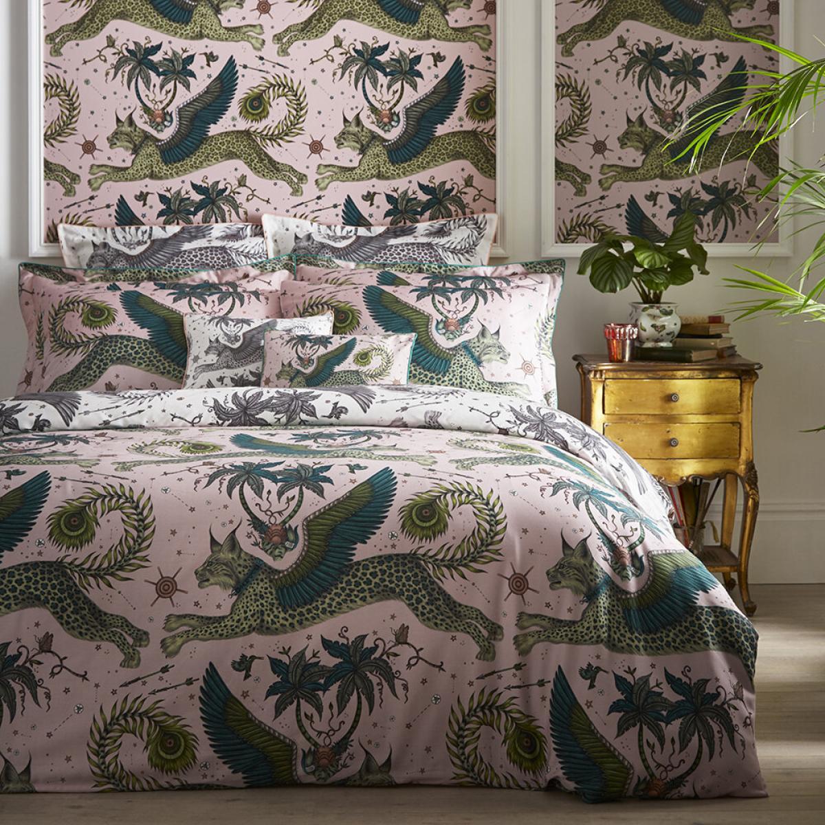 I love the Emma J Shipley - Lynx duvet in blush for its striking yet versatile design. Its detailed pattern and soft colour palette make it a real statement piece, especially in eclectic or bohemian interiors. It works well as a focal point against neutral or muted backgrounds, and you can style it with coordinating blush or earthy tones to create a cosy, layered look. Practical tips include mixing it with textured cushions and throws in complementary colours to add depth, and because of its bold pattern, pairing it with more subdued bedside accessories keeps the look balanced. It’s ideal for bringing a touch of visual interest to the bedroom without overwhelming the space.