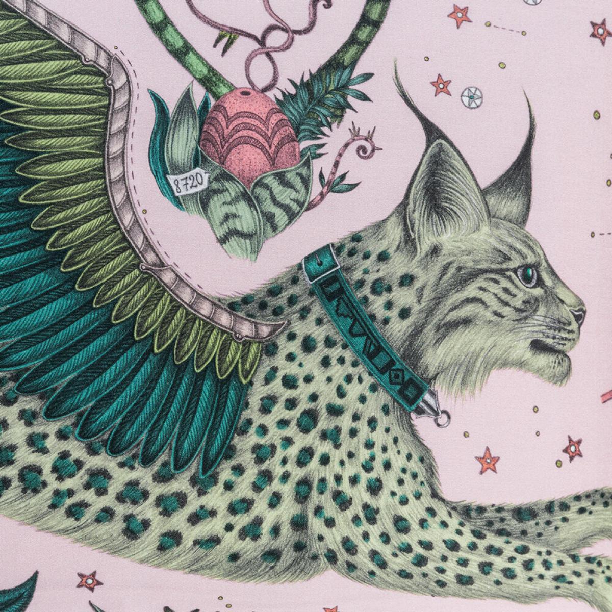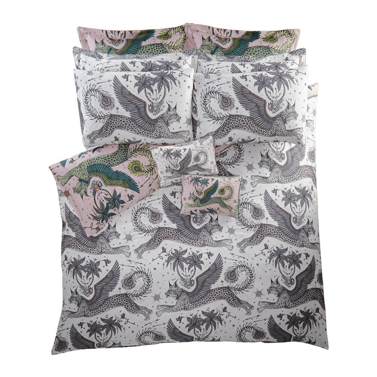 Take a walk on the wild side in the bedroom with this Lynx duvet cover from Emma J Shipley. Made from soft 200 thread count cotton, this duvet cover is decorated with a magical flying lynx design. In vivid shades of teal and blush pink, it reverses to the same design in cool grey and white.