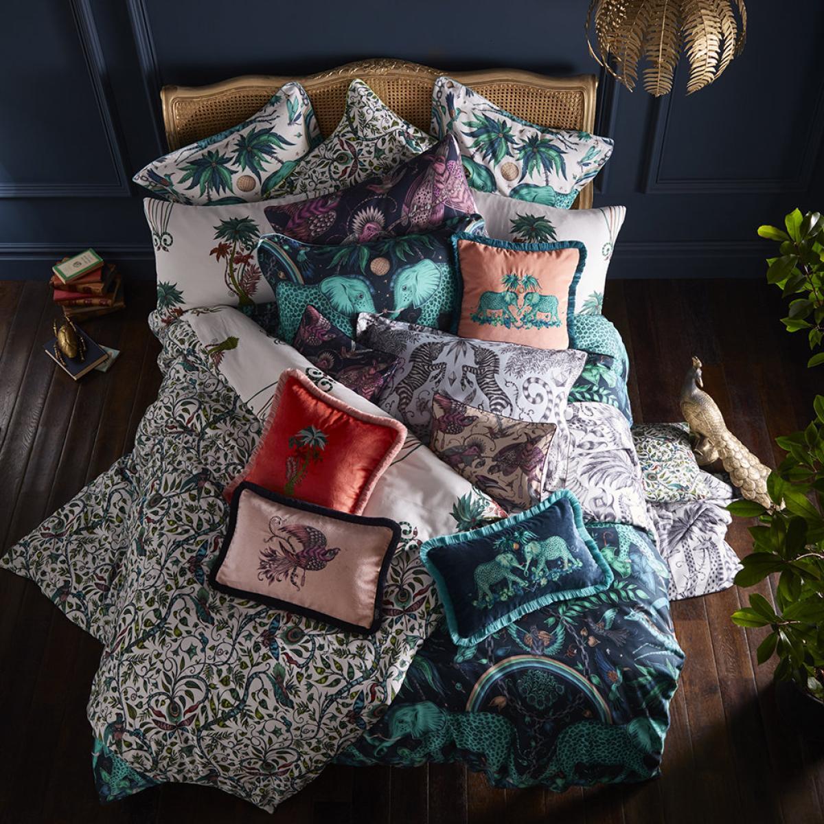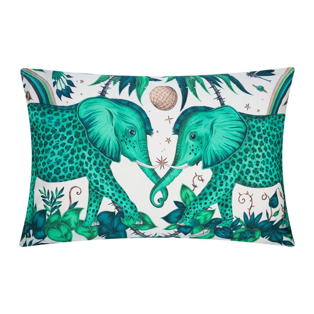 Dive into the depths of the jungle with this pair of pillowcases. Patterned with pretty pachyderms, this best-selling illustration is created in collaboration with Clarke & Clarke & is finished with winding foliage & surreal details.