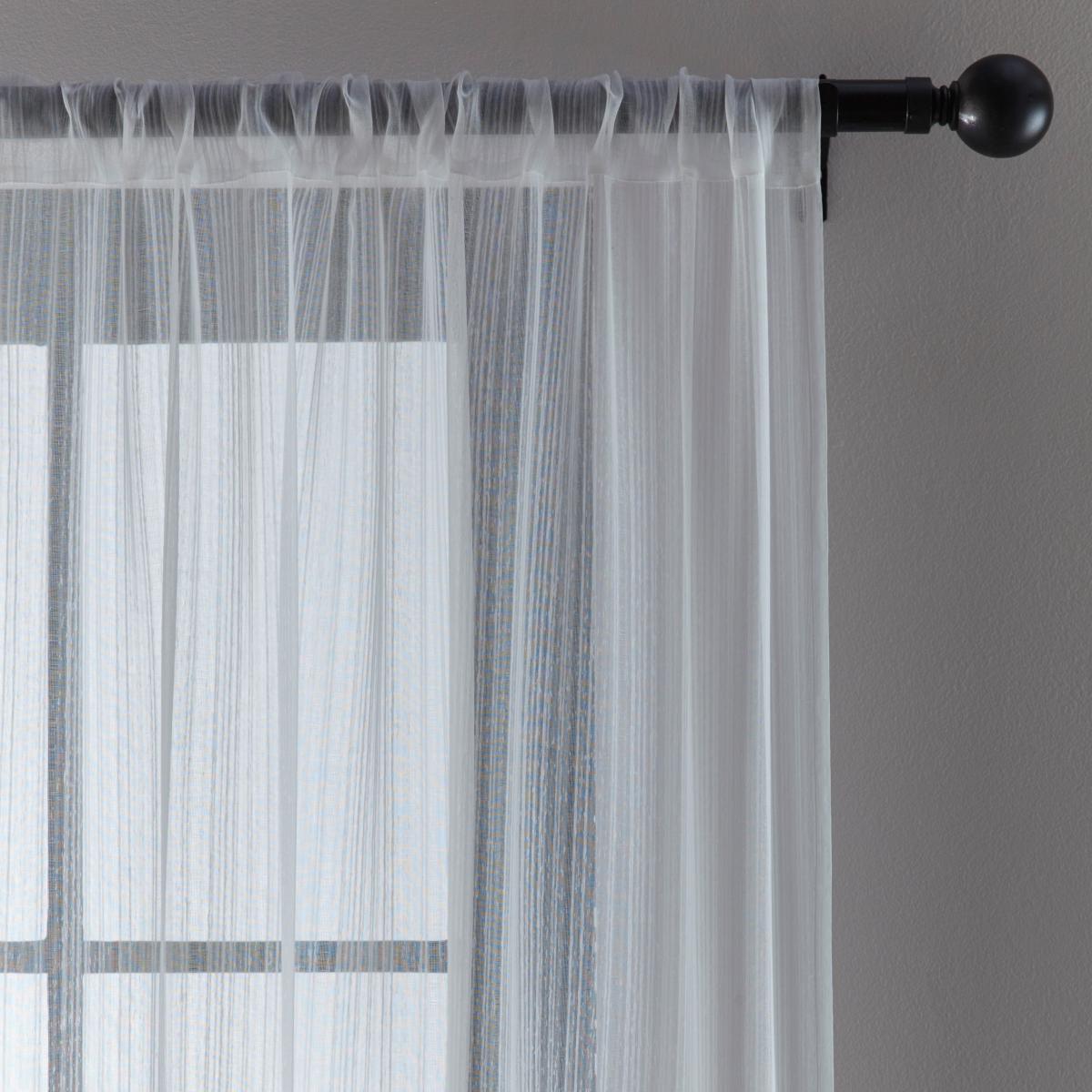 * 1x voile panel* Modern textured design* Contains recycled content* Stylish black colourway* Easy to hang slot top header* Machine washable This stylish voile is the perfect finishing touch to any room. The modern textured design gives an airy and light feel to your room, while the sheer fabric keeps you cool in summer. Please note: Due to the nature of this design, it may not be possible to pattern match across multiple purchases.