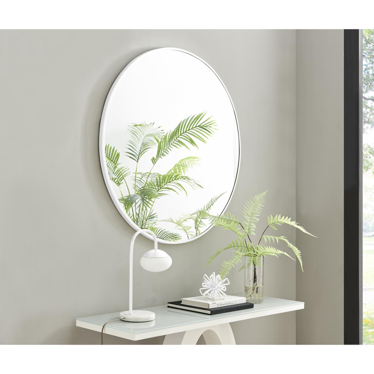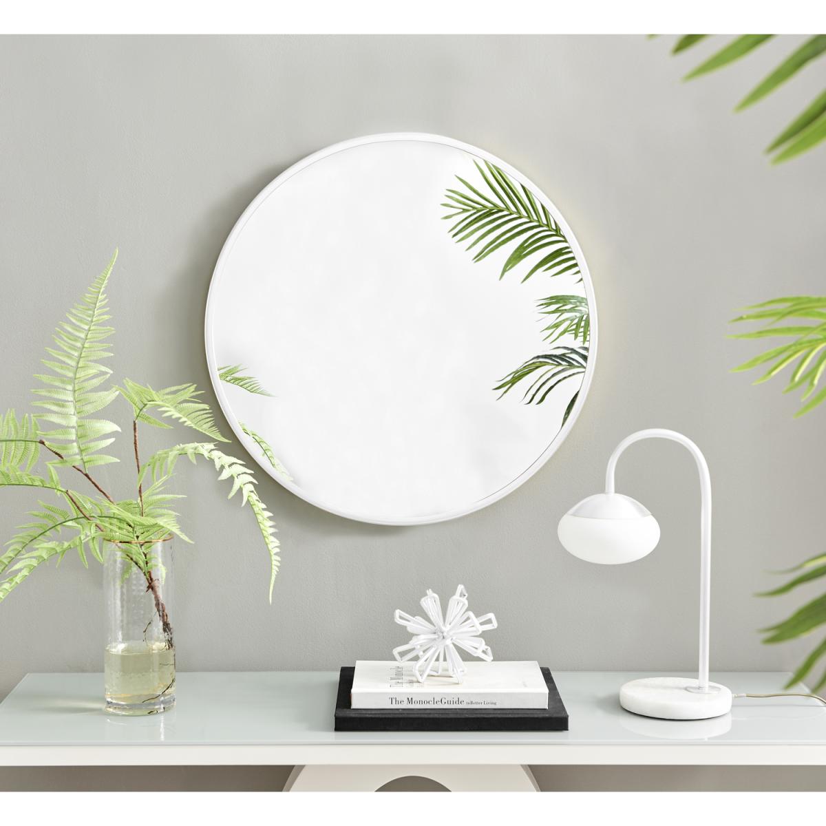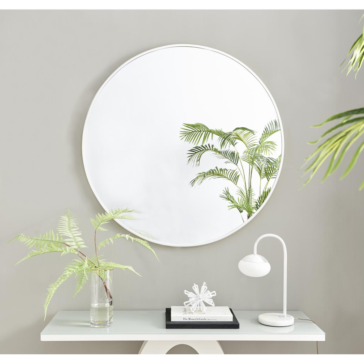 The Emma mirror collection features the on trend round mirror design with metal frame for a simple yet high impact piece for your wall. It looks stunning in any room of your home, including the living room, dining room, bedroom or hallway. Use this large round mirror to open up the room, add light and space to make it appear bigger and brighter. We've taken this popular design and made it bigger and better!With five different colours to choose from for the metal frame and three large sizes, this is our most versatile mirror yet. This white round version of the Emma mirror will fit in perfectly in modern or traditional homes and will really stand out on your walls. The white metal frame is a subtle yet statement choice which will get the attention of all your guests. Measuring 100cm, this round wall mirror is extra large and will make a statement in your room. It's ideal for adding light to dark corners to really open up the room. The Emma round metal mirror is well packaged to arrive with you safely and includes our handy wall hanging guide so you know exactly where to place the halls to hang this perfectly. Hardware for hanging the mirror is not included