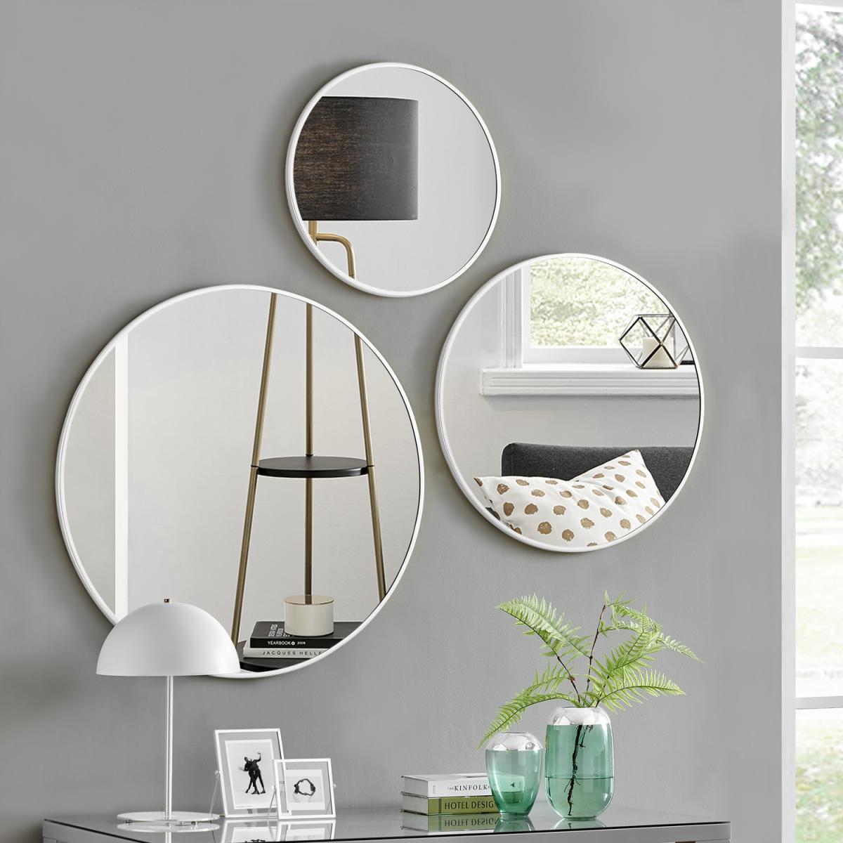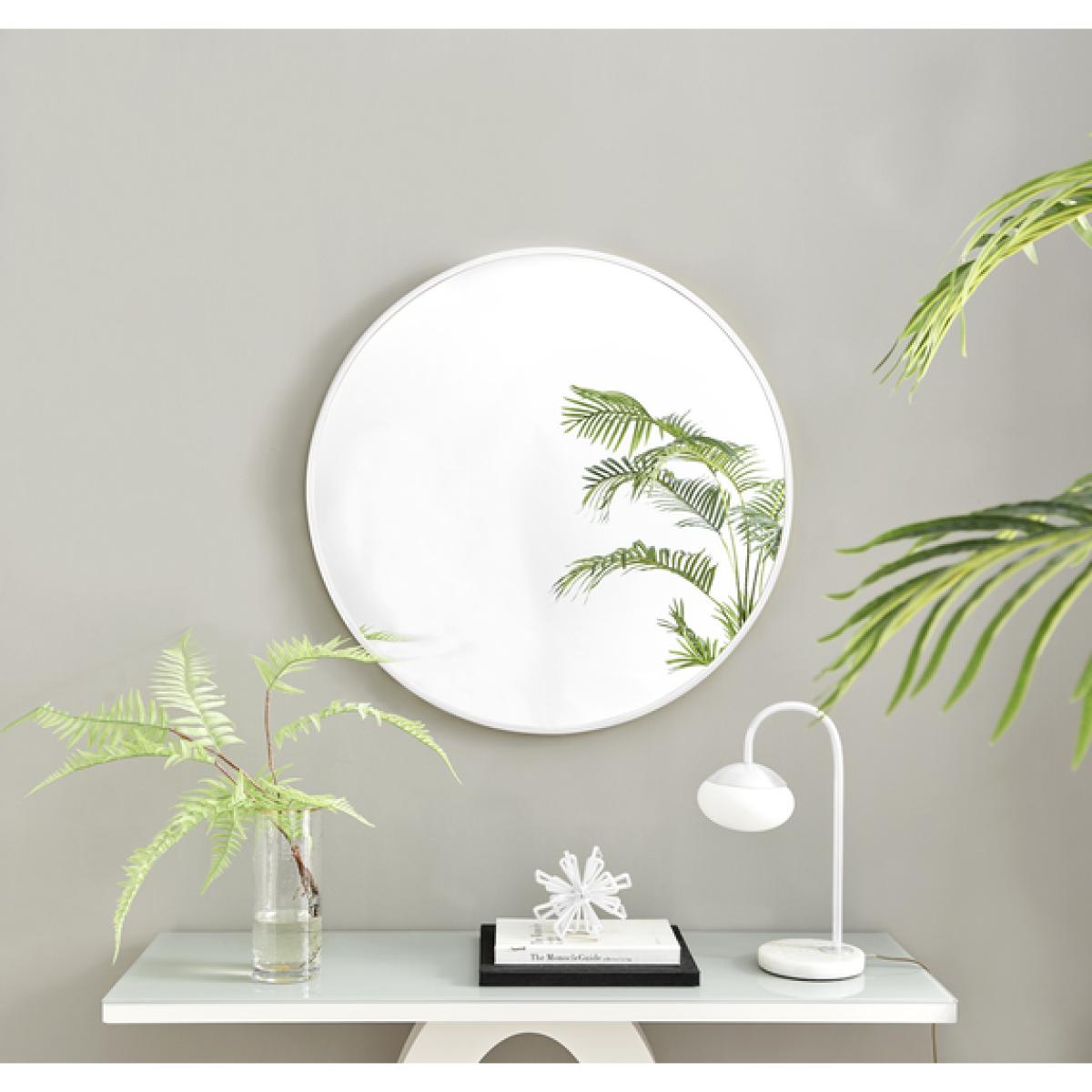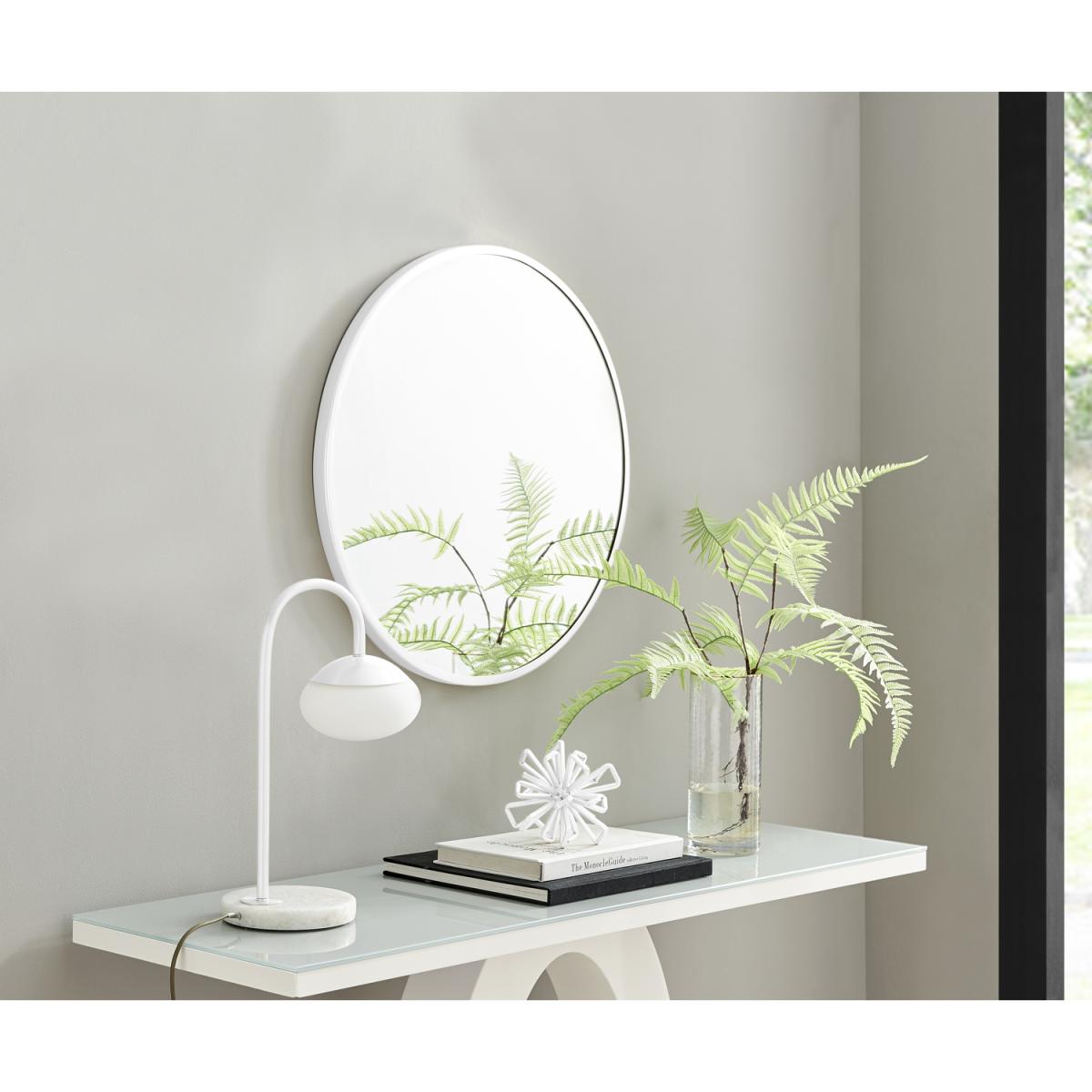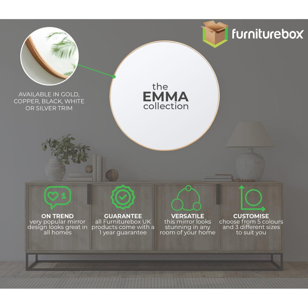 The Emma mirror collection features the on trend round mirror design with metal frame for a simple yet high impact piece for your wall. It looks stunning in any room of your home, including the living room, dining room, bedroom or hallway. Use this large round mirror to open up the room, add light and space to make it appear bigger and brighter. We've taken this popular design and made it bigger and better!With five different colours to choose from for the metal frame and three large sizes, this is our most versatile mirror yet. This white round version of the Emma mirror will fit in perfectly in modern or traditional homes and will really stand out on your walls. The white metal frame is a subtle yet statement choice which will get the attention of all your guests. Measuring 100cm, this round wall mirror is extra large and will make a statement in your room. It's ideal for adding light to dark corners to really open up the room. The Emma round metal mirror is well packaged to arrive with you safely and includes our handy wall hanging guide so you know exactly where to place the halls to hang this perfectly. Hardware for hanging the mirror is not included