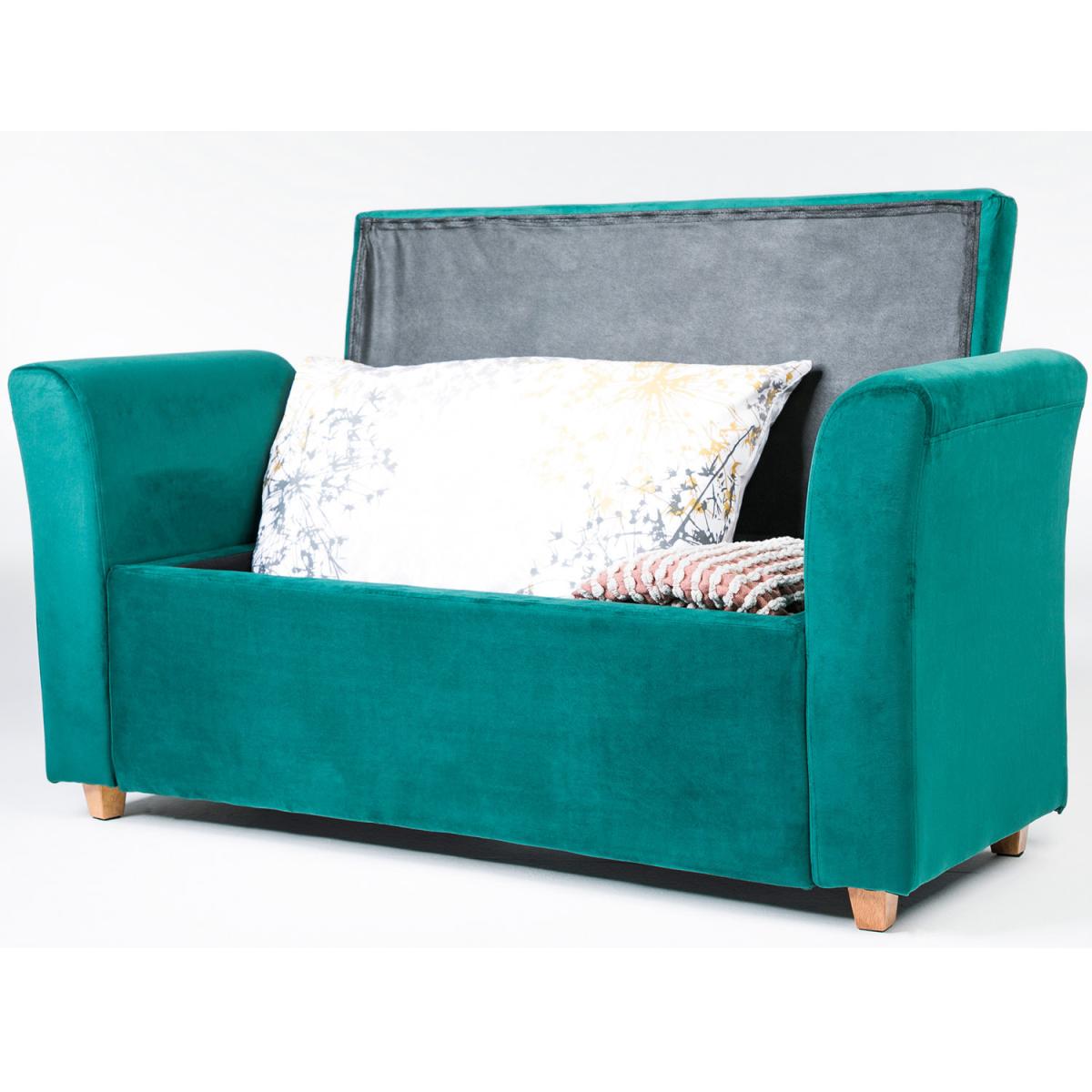 The Emma storage bench offers a simplistic yet modern design. It is upholstered in a velvet fabric which provides a luxurious feel at an affordable price. The bench includes hidden storage which can be revealed by simply lifting the lid at the longest side. The storage space is almost as big as the bench itself, providing a perfect area to store cushions, sheets, towels, toys, shoes etc in any room of the house. It is an ideal space-saving option that additionally looks aesthetically pleasing. The bench is available in 4 colours light blue, pink, grey and emerald.
