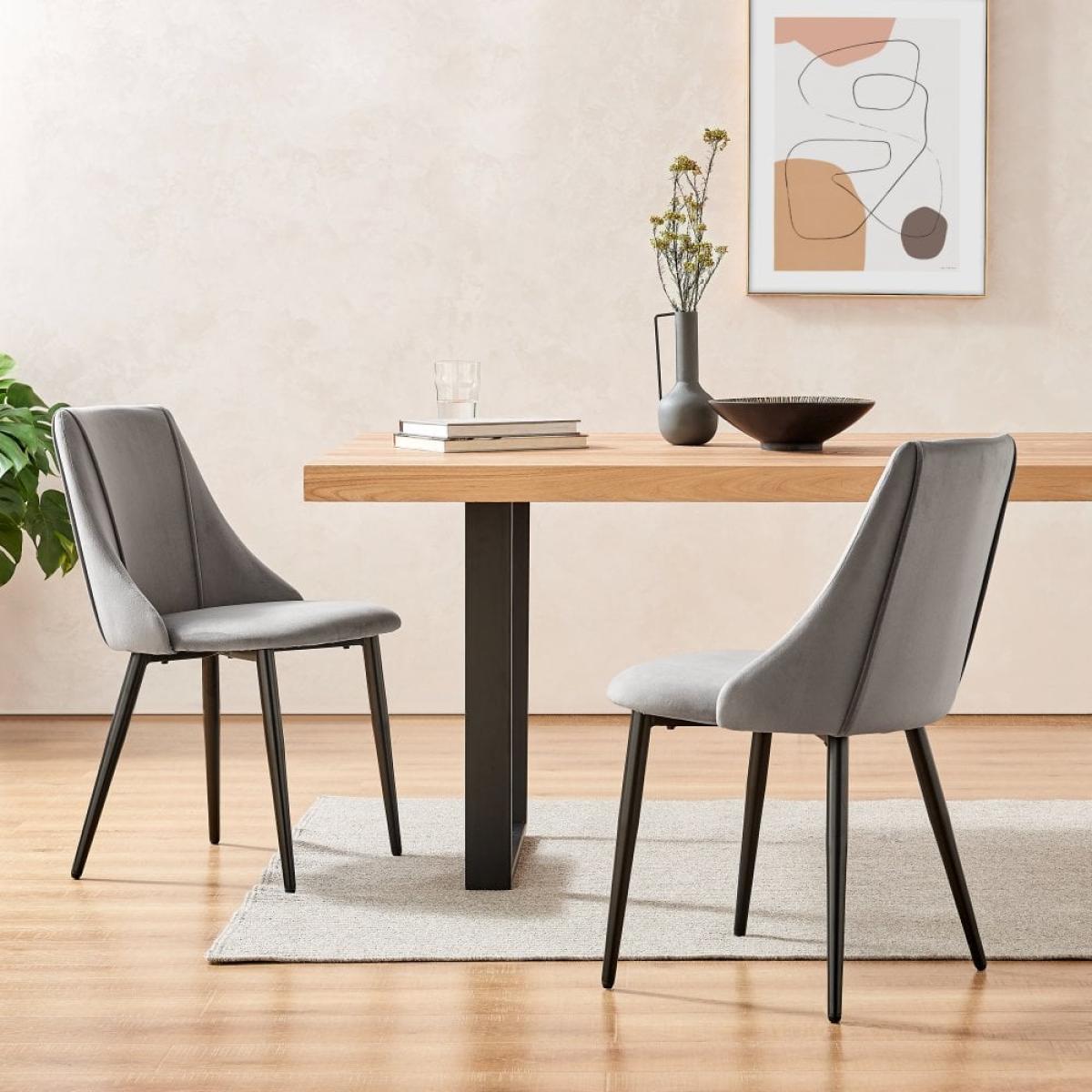 I love this grey velvet chair for its sleek, modern silhouette combined with a touch of softness thanks to the velvet upholstery. It’s versatile enough to fit into contemporary, Scandinavian, or even luxe interiors, adding a sense of understated elegance. When styling, consider pairing it with a dark or neutral-toned dining table to make the chair’s fabric stand out, or mix it with natural wood accents for a warmer, more inviting look. Practical tips include using easy-to-clean velvet upholstery and adding colourful or patterned cushions for extra personality, making it both a stylish and functional choice for your dining space.