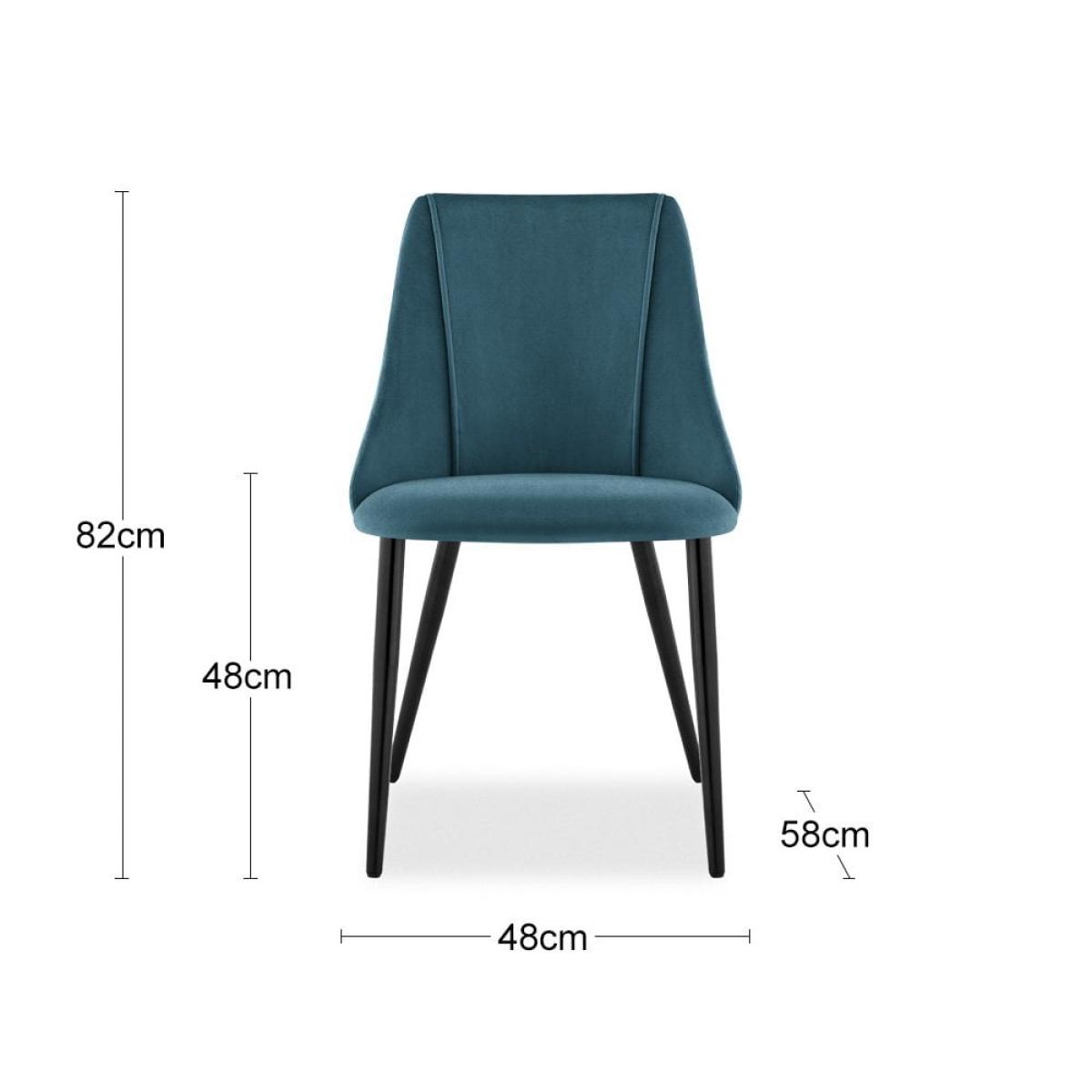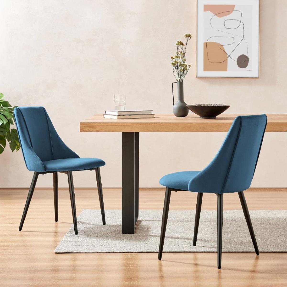 I love this chair for its sleek silhouette and rich midnight blue velvet that instantly elevates a dining space. It works particularly well in contemporary or modern interiors, adding a touch of luxury without feeling overly formal. For styling tips, pair it with a wooden or marble table for contrast, or go monochrome for a sophisticated look. Don't be afraid to mix and match with other colours or textures, such as metallic accents or upholstered benches, to create a layered, inviting dining area. Its versatile design ensures it can easily slot into both minimal and more eclectic interiors, making it a practical yet stylish choice.