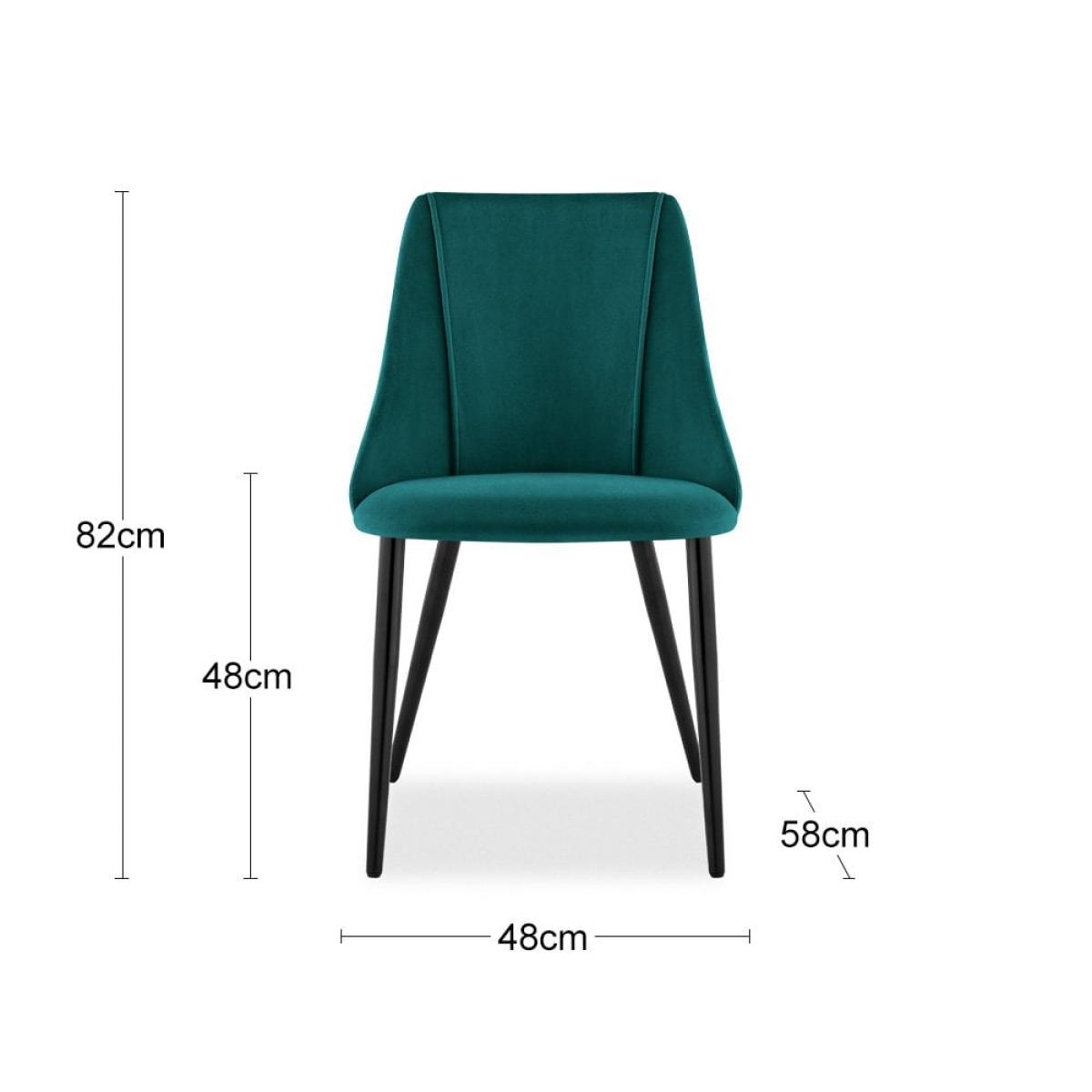 I love this chair for its striking teal velvet finish, which adds a rich pop of colour to any dining space. Its streamlined silhouette and chic legs make it versatile enough for both contemporary and more traditional interiors. It works particularly well in kitchens or dining rooms with a colour scheme that includes neutrals, greys, or metallic accents, letting the teal be the statement piece. Practical styling tips include pairing it with a glass or wooden table to balance textures, or using candles and understated tableware to let the colour and material of the chair shine. Its sumptuous velvet elevates everyday dining into a more luxurious experience, while still being functional and comfortable.