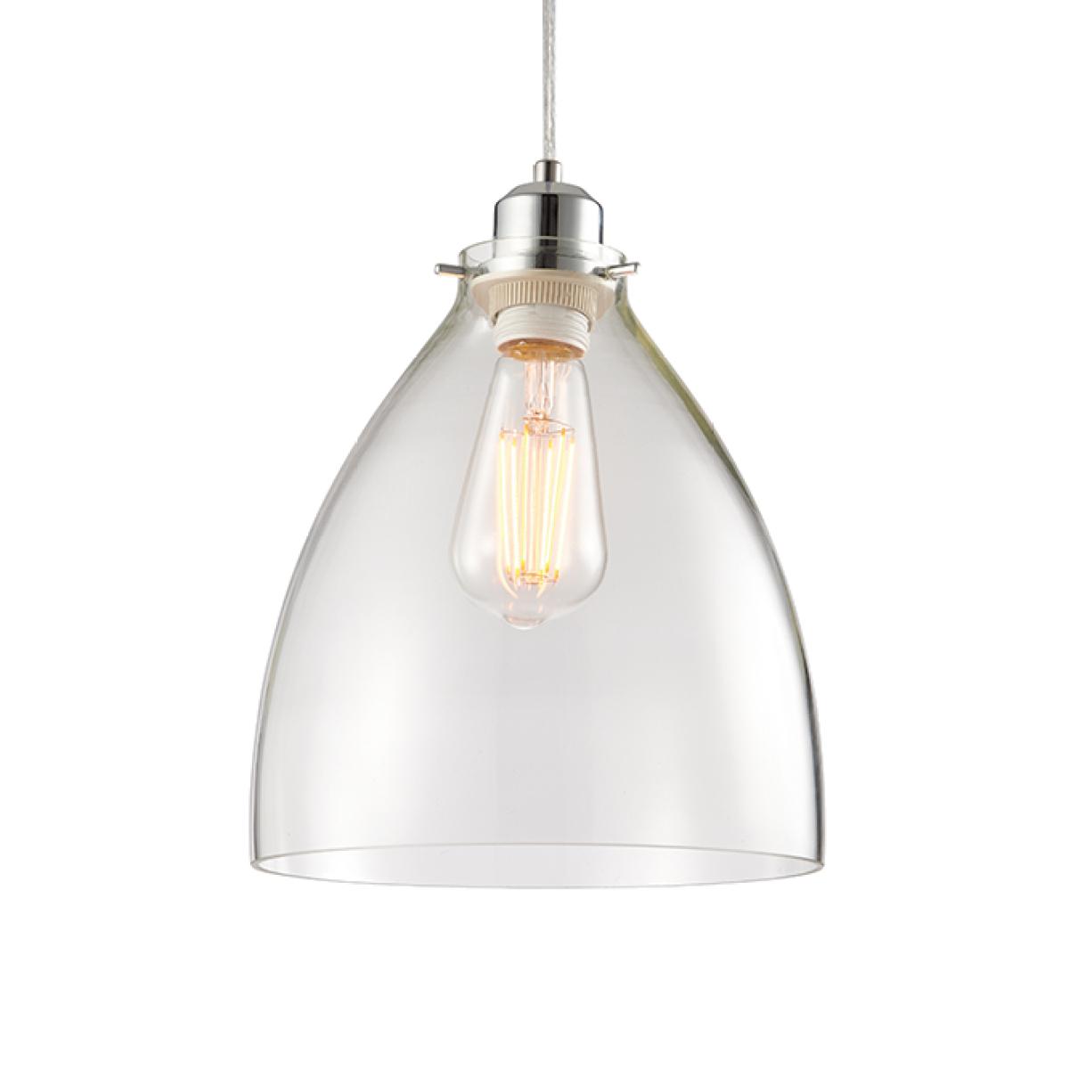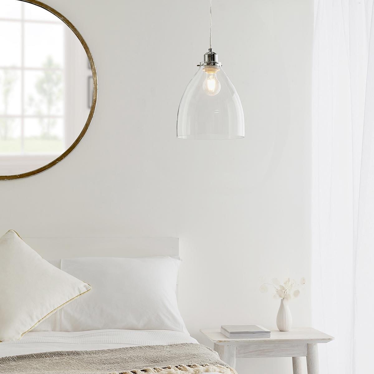 I love this clear glass pendant for its clean, minimalist aesthetic which makes it versatile across a variety of interiors. It works particularly well in modern, industrial, or Scandinavian-inspired spaces, where its transparency allows it to blend seamlessly without overpowering other design elements. Practical styling tips include pairing it with vintage-inspired filament bulbs for an added touch of warmth, or layering multiple pendants at different heights over dining tables or kitchen islands for a focused but stylish light source. Its simplicity also makes it ideal for those seeking a subtle statement piece - allowing the light to take centre stage while maintaining a clutter-free look.