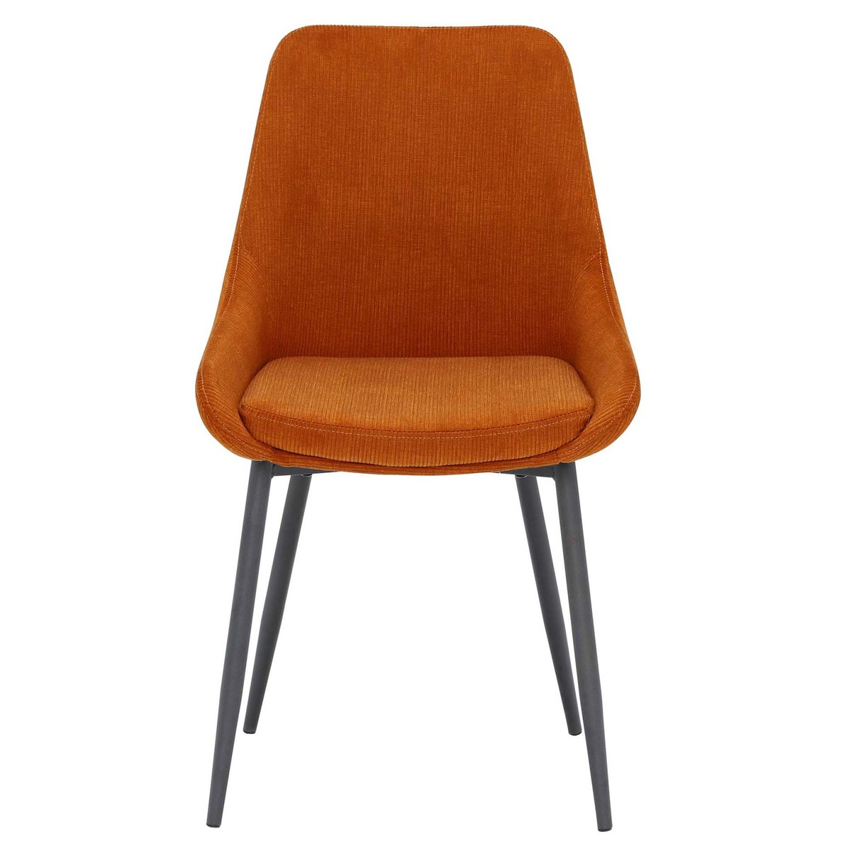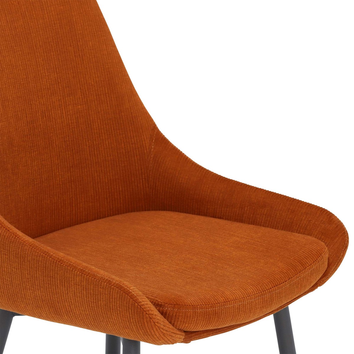 A refreshing addition to any dining room, the Emmett dining chair in Orange features beautifully textured corduroy fabric and an exceptionally supportive seat. Finished with black metal legs, this contemporary dining chair can be styled as a monochrome set or partnered with the green, grey or blue versions for an eclectic look.