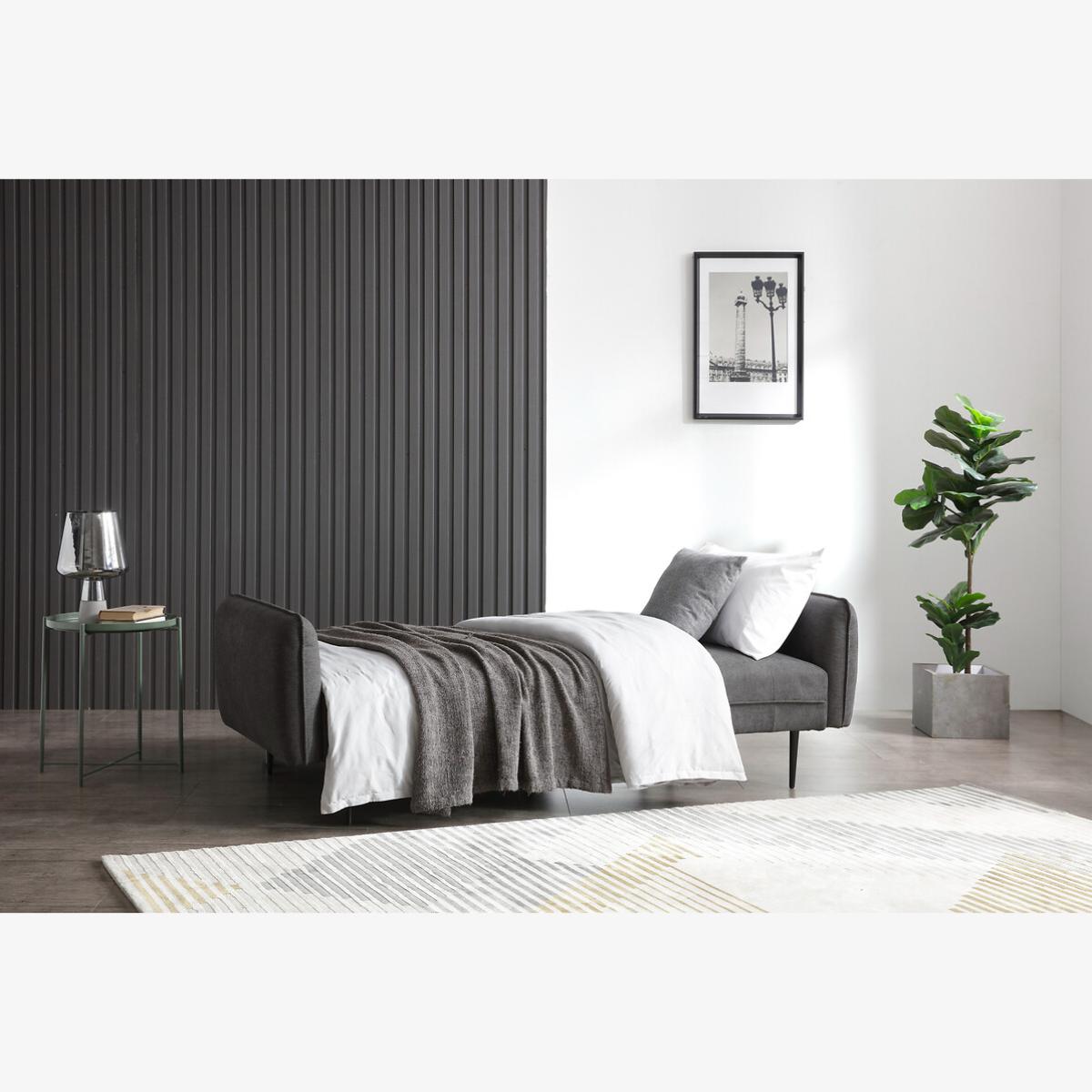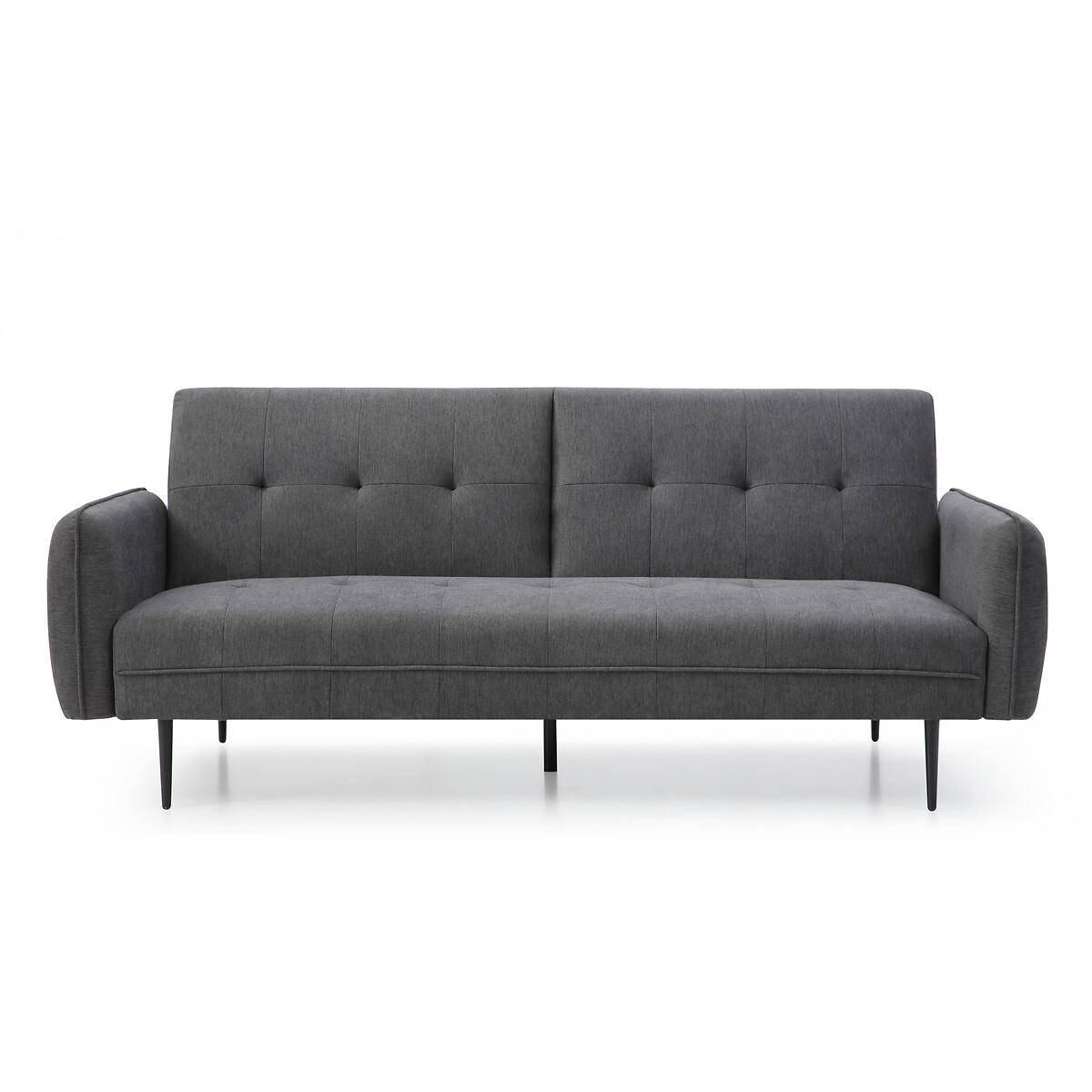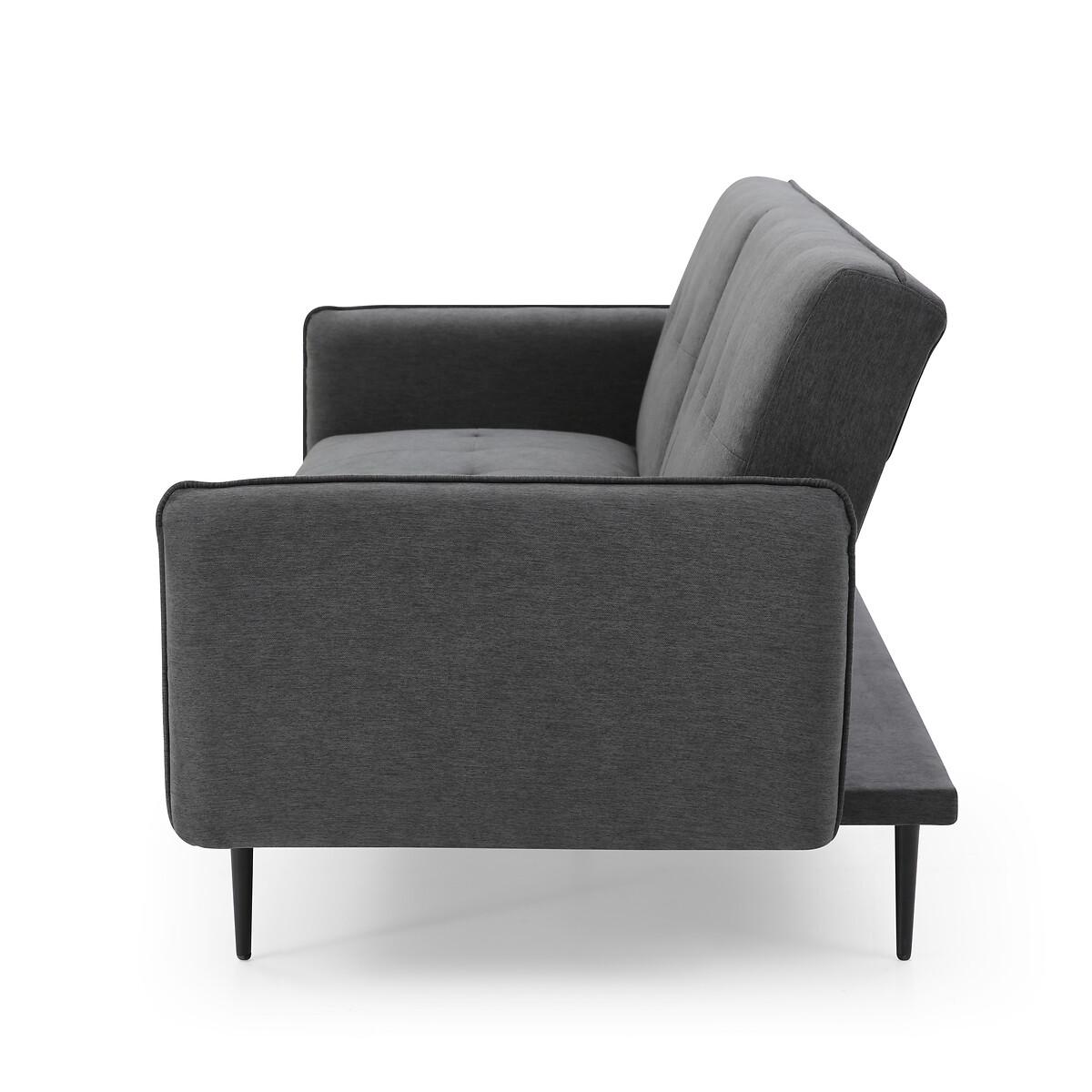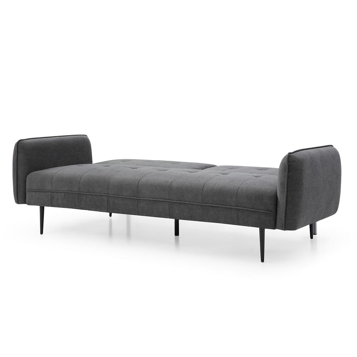 A click-clack futon style sofa bed which folds down to create a sleeping space in just one click! This comfy sofa features soft textured weave fabric complemented by slim metal legs. Envelope finishings and tufted button detail add a contemporary touch. Product details• Soft Textured Weave upholstery with a faux linen look• Matte black tapered legs• Tufted detailing on back and seat• Piped detaliing on arms• Seats 3• Click Clack mechanism• EUTR Compliant, BS5852 compliant• 1 Year Warranty. Product Composition • Fabric - Soft Textured Weave (100% Polyester)• Fillings - foam• Legs - Metal legs• Frame- Eucalyptus & Plywood. Product Dimensions Overall width - 91 cm Overall depth - 210 cm. Overall height - 88 cm Weight - 39 KGSeat Height - 43 cm. Seat Width-175 cm. Seat Depth - 54 cm. Back Height - 51 cm. Arm Height - 68cm. Leg Height - 20cm. Sofa Bed Sleeping Area Dimensions - W175 cm x D112 cm Package Dimensions - 181 cm x 115 cm x 27 cm, Weight 42 kg. Please remember to measure your available space before ordering. This product will be dispatched by one of our trusted suppliers. You’ll be contacted by their selected courier about your delivery. Please note: this product cannot be delivered to all Offshore Islands, Northern Ireland or Republic of Ireland. KYOTO01