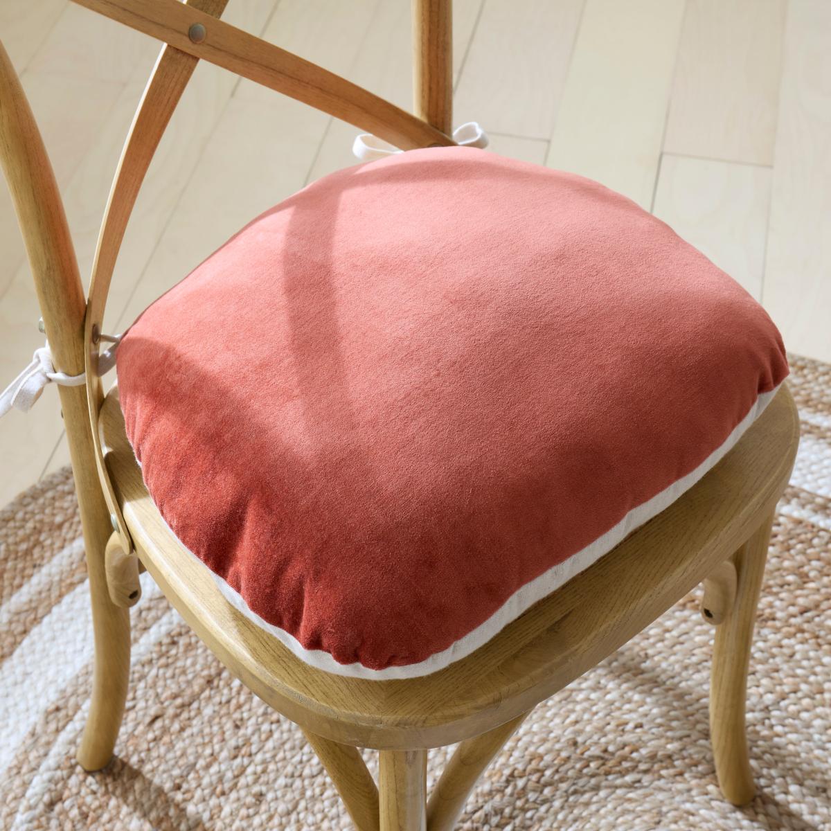 * Soft and luxurious feel* Made from 100% cotton velvet* Includes ties for security Add a luxurious feel to your seating area with the Emmie seat pad. Made from a beautiful 100% cotton velvet this plump cushion offers a soft sumptuous feel that’s perfect for everyday comfort. Available in a variety of rich colours, our Emmie seat pads bring warmth and style to any chair, while the recycled polyester filling provides a plush and sustainable option. Wonderfully crafted with practical ties, it stays securely in place, ensuring both stability and functionality. The perfect adornment for your dining or kitchen chairs, this seat pad combines eco-friendly material with a chic, modern look. The Emmie seat pad is a beautiful yet simple way to elevate your space.