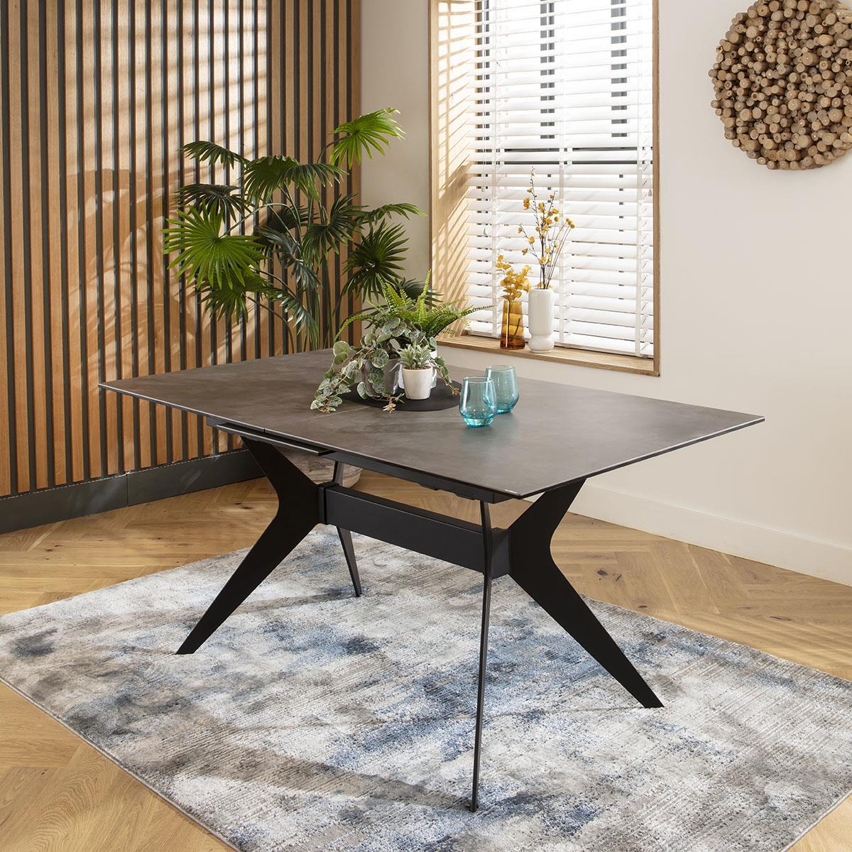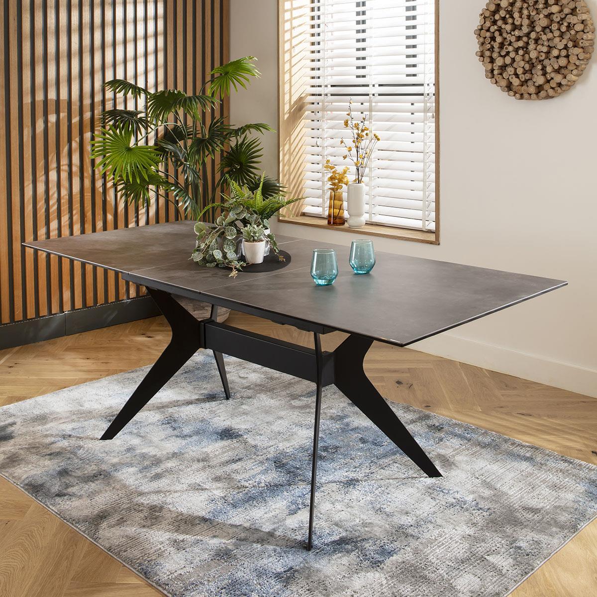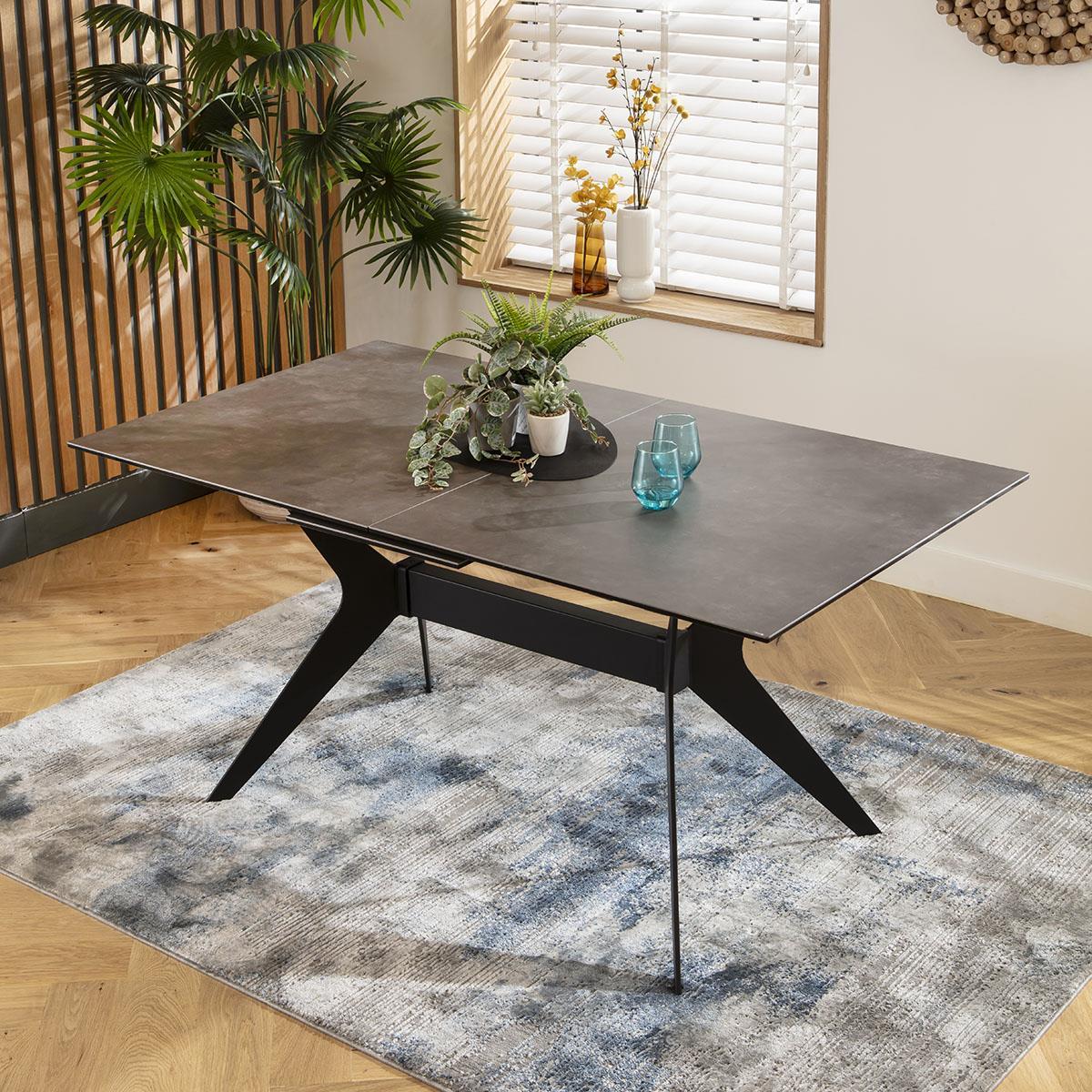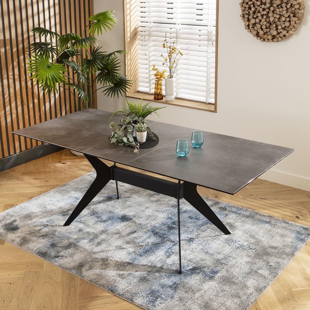 Elevate your dining experience with our extendable marble-effect dining table. This modern dining room table seamlessly extends from 160cm to 200cm, comfortably seating up to 8 guests. Adorned with an Italian imported ceramic tabletop boasting a marble effect, ensuring unparalleled durability and elegance. This ceramic dining table is designed with premium build quality, promising longevity and resilience. The ceramic surface is exceptionally scratch, stain, and heat resistant. The unique base design, crafted from black powder-coated metal, adds an industrial sleek touch. The auto-lift extending mechanism, built into the tabletop, allows for effortless extension by one person, enhancing functionality while maintaining a chic design. The grey extendable dining table features a luxurious marble effect ceramic top, delivering a timeless and sophisticated look. The Italian imported ceramic not only ensures a superior finish but also enhances the overall aesthetic of your dining space. The combination of the grey tones and the black metal base creates a striking contrast, perfect for modern interiors. The Emperor table is designed for straightforward assembly, ensuring you can enjoy your new dining table with minimal effort. The extending mechanism is pre-installed in the tabletop, which simply needs to be attached to the base. Detailed instructions and all necessary hardware are included, allowing you to quickly and easily assemble your extendable dining table. W160-200cm D90cm H76cm Ceramic is scratch, stain and heat resistant Dining Table for 8