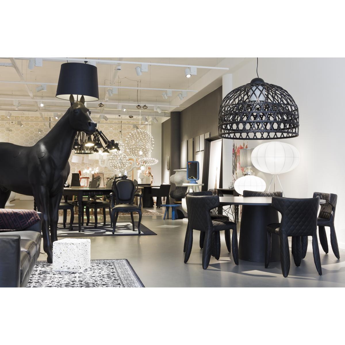 I love this pendant for its bold yet refined design - it makes a real statement without overwhelming a space. Its large scale and black frame lend it well to contemporary or eclectic interiors, especially in lofts or open-plan areas where a striking central piece can shine. Practical styling tips include hanging it over a dining table or within a high-ceilinged room to emphasise its presence. Pair it with minimalist furniture to let the light fixture be the focal point, or juxtapose its industrial aesthetic with softer textures and colours for an edgy, modern vibe. Its robust silhouette makes it versatile, but it works best where it has room to hang freely and be appreciated as a design feature.