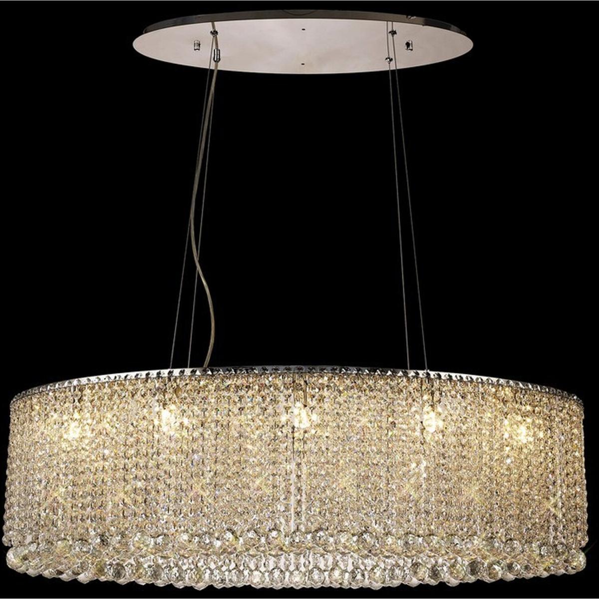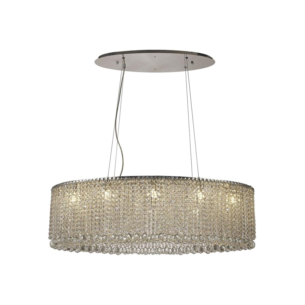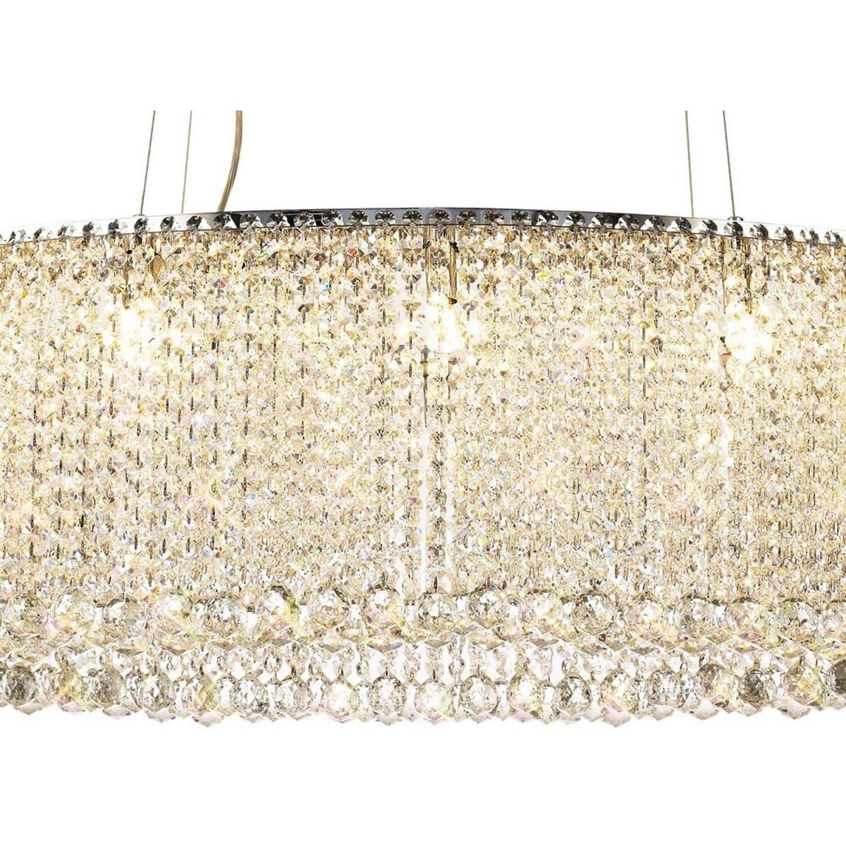 This is another incredible crystal range by lighting adding an alternative impressive collection to the crystal lighting portfolio they are famous for. This collection of five G9 pendants creates impact with its impressive sizes and abundance of high quality crystal components. Clear crystal balls are hung from rows of long clear crystal button strands, attached to the outside and inside rings of the polished chrome framework. The round versions of this light are available in three sizes with corresponding round ceiling plates. The largest round pendant is a truly spectacular statement piece with the 15 lampholders reflecting light around the sizeable 110cm diameter. Knowing that featured pieces such as these sometimes need to meet other requirements, this collection also offers a high impact pendant in both a rectangular and oval shape.