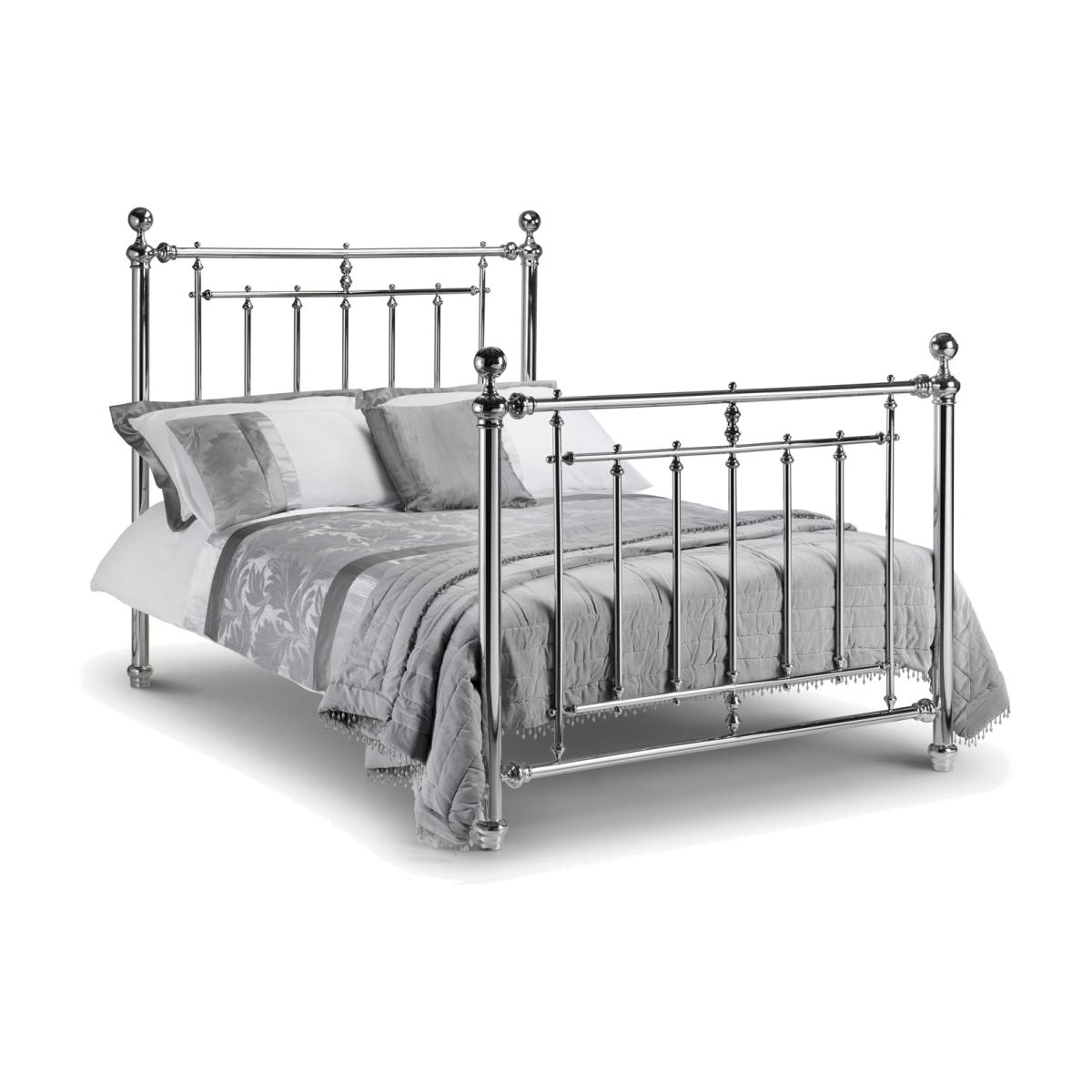 An imposing and impressive chrome bed, this Empress Bed Frame adds a luxurious element to your bedroom. Made with a high headboard and a matching footboard, this bed is made with highly detailed finials and castings to create a real wow factor in your space. Designed with a sprung slatted base for added comfort and a prolonged mattress life, this is a stunning centrepiece for any bedroom.