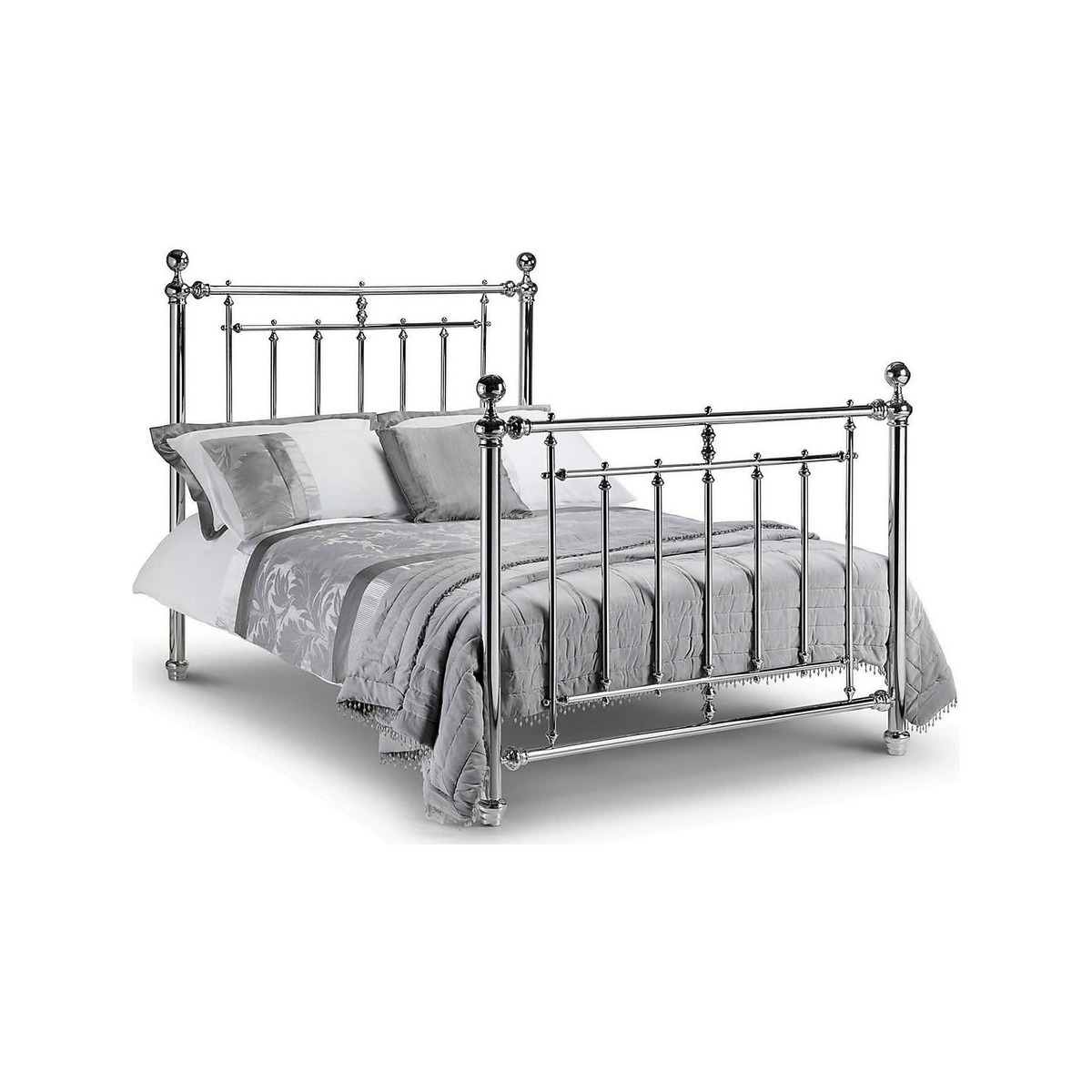 The Empress Chrome Bed Frame will make an impressive centrepiece in any bedroom. This beautifully designed chrome bed frame features clean straight lines and a high foot end with elegant detailing to match the headboard. Please note, unfortunately we cannot deliver this item to the Channel Islands.