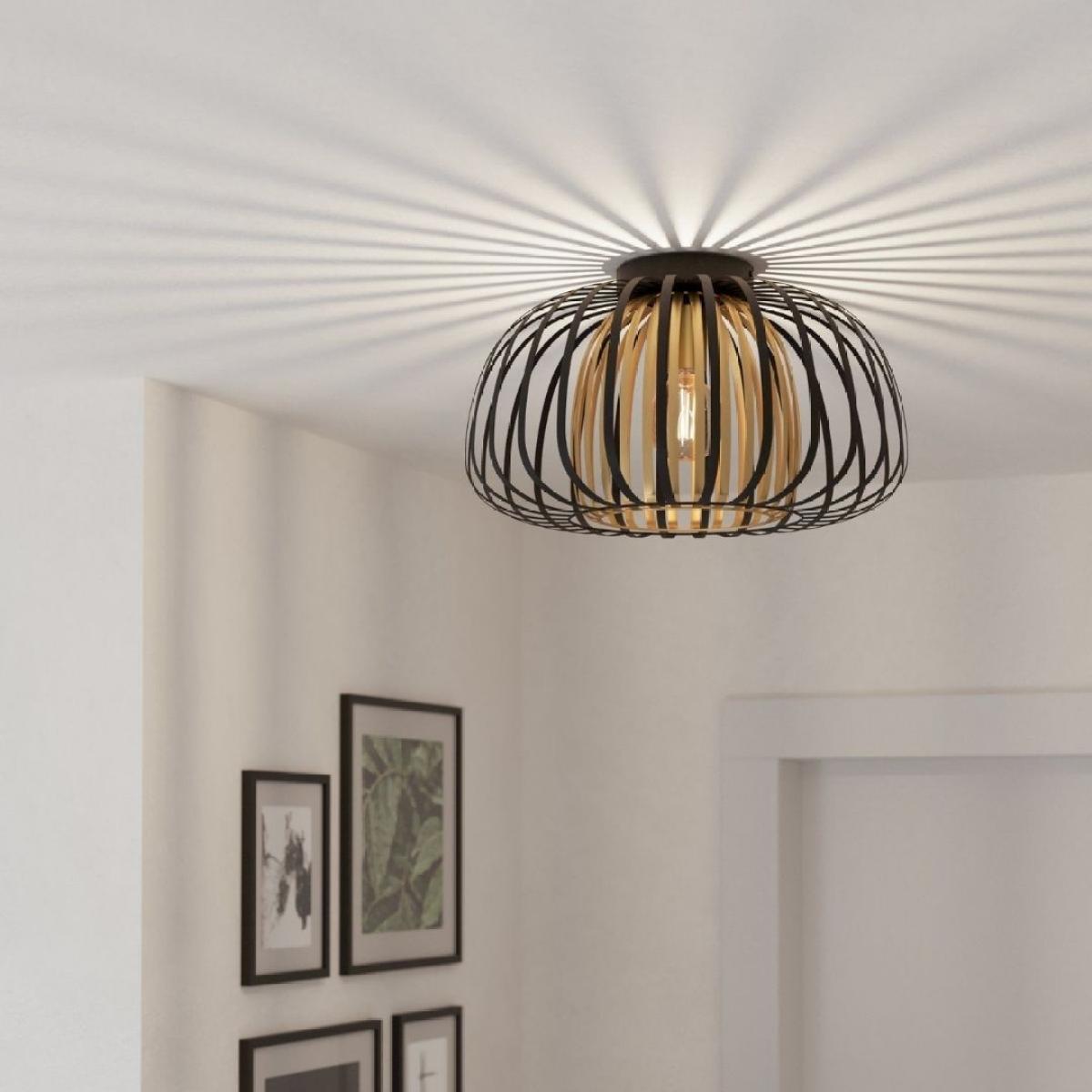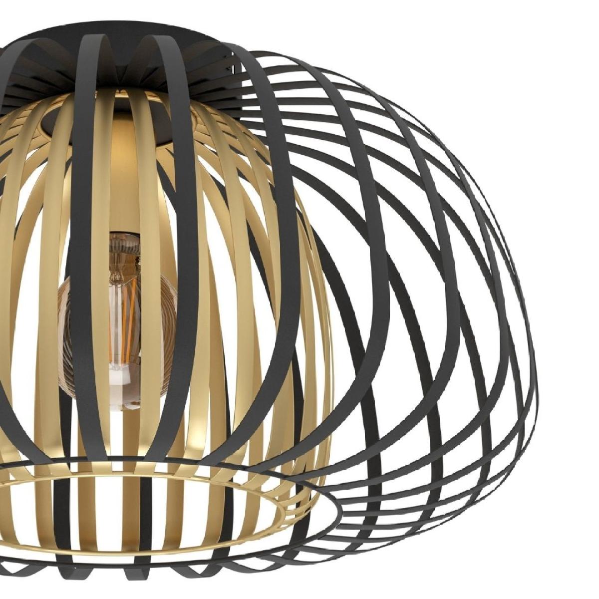 Encintos 1-light flush ceiling light, featuring an inner lampshade made from brass-coloured metal strips and an outer lampshade made from black metal strips. A striking blend of industrial chic and modern sophistication, this unique ceiling light features an innovative double-shade design. The inner lampshade is crafted from gold metal strips, radiating warmth and elegance, while the outer lampshade is constructed from black metal strips, adding a bold and contemporary edge. The interplay between the brass and black metal strips creates a captivating visual contrast, casting intriguing patterns and a warm, inviting glow throughout the room. The flush mount design makes the Encintos ceiling light perfect for spaces with lower ceilings, providing ample illumination without compromising on style. Ideal for living rooms, bedrooms or hallways, the Encintos flush ceiling light not only enhances your decor but also serves as a statement piece. Its combination of materials and finishes ensures it fits seamlessly into various interior styles, from industrial to modern and eclectic. Encintos 1-light flush ceiling light, featuring an inner lampshade made from brass-coloured metal strips and an outer lampshade made from black metal strips. A striking blend of industrial chic and modern sophistication, this unique ceiling light features an innovative double-shade design. The inner lampshade is crafted from gold metal strips, radiating warmth and elegance, while the outer lampshade is constructed from black metal strips, adding a bold and contemporary edge. The interplay between the brass and black metal strips creates a captivating visual contrast, casting intriguing patterns and a warm, inviting glow throughout the room. The flush mount design makes the Encintos ceiling light perfect for spaces with lower ceilings, providing ample illumination without compromising on style. Ideal for living rooms, bedrooms or hallways, the Encintos flush ceiling light not only enhances your decor but also serves as a statement piece. Its combination of materials and finishes ensures it fits seamlessly into various interior styles, from industrial to modern and eclectic.